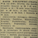 RAPID WEŁNOWIEC—CRACOVIA 5:2 (2:0). Bramki dla Rapidu strzelili: Szmidt w 39 i 47 min,, Gluck w 32 i 70 min. oraz Gajewski w 46 min., a dla Cracovii: Hausner w 56 min. i Kowalik w 75 min.