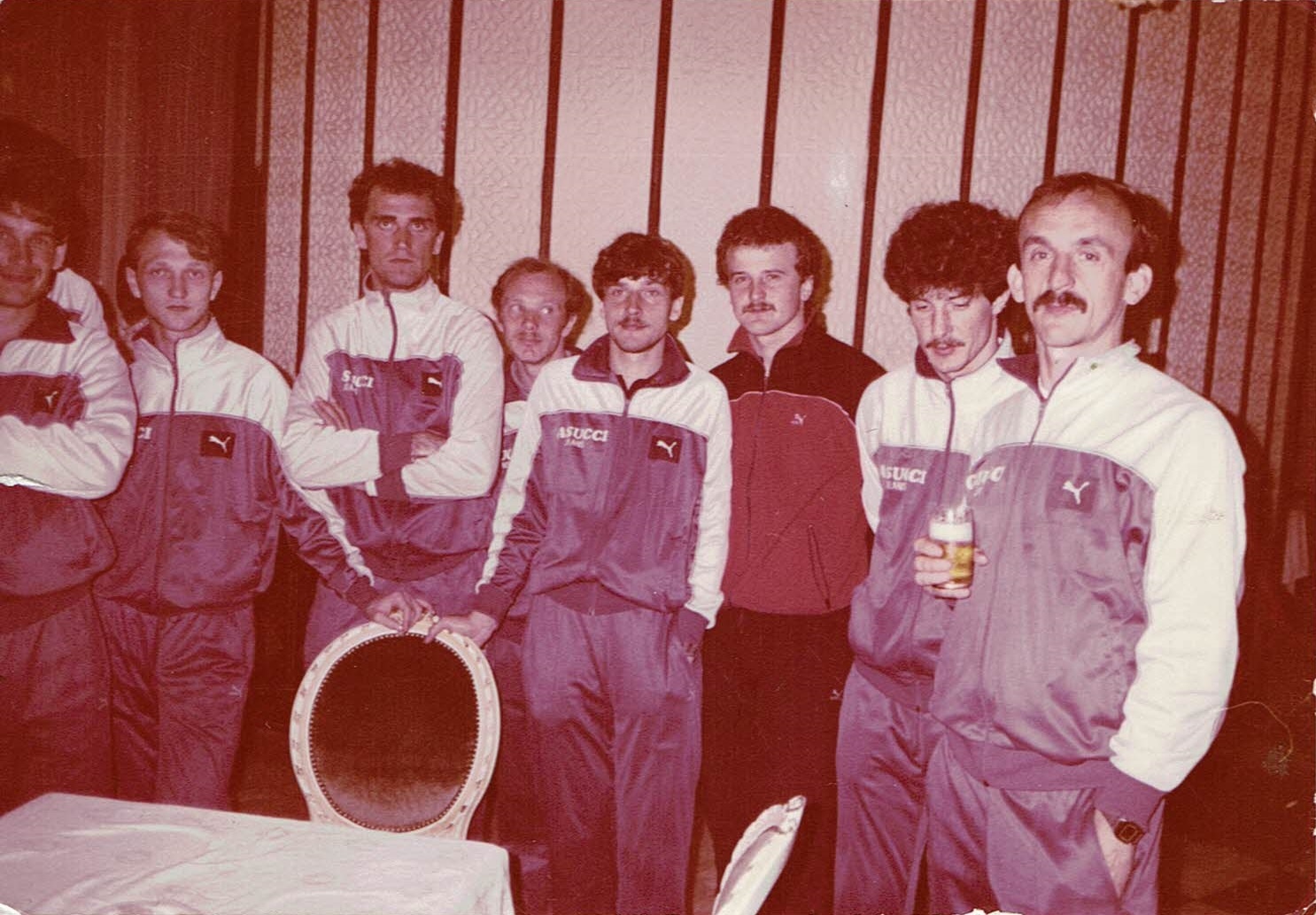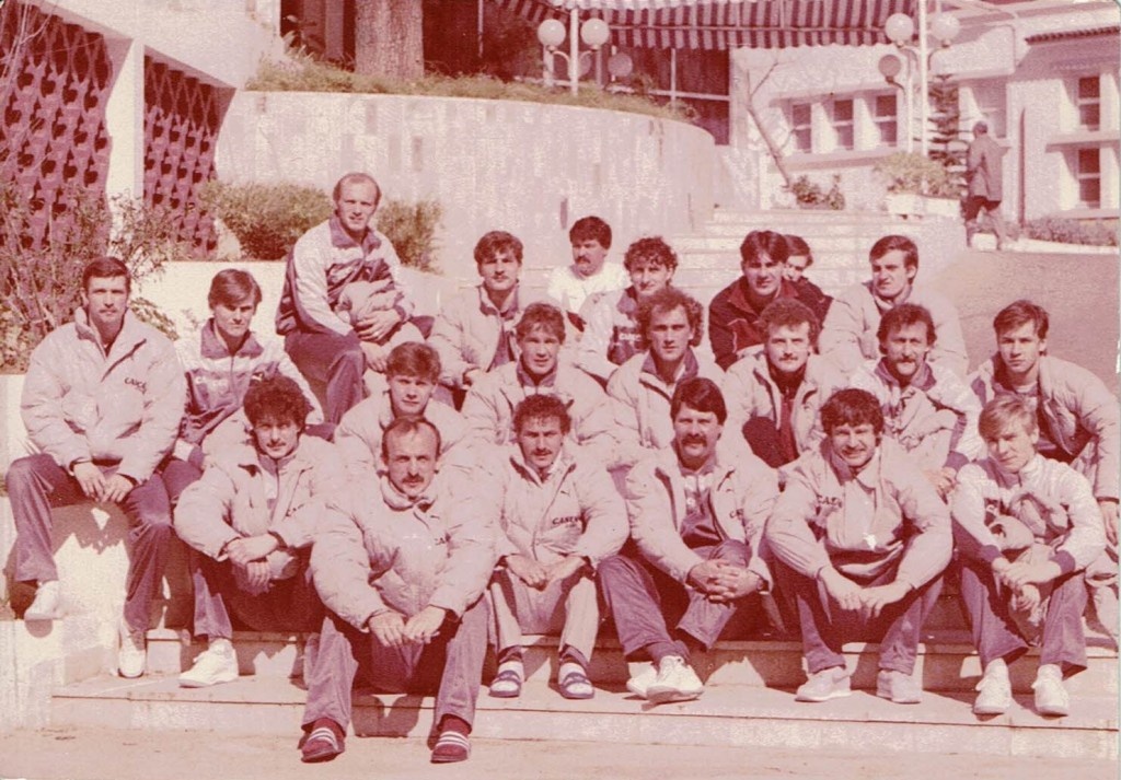 W środkowym rzędzie stoją: Władysław Żmuda (trener), Krzysztof Hetmański, Marek Biegun, Robert Sęk, Wojciech Spałek (masażysta), Janusz Jojko, Andrzej Lesiak, Piotr Piekarczyk, Jerzy Michajłow (drugi trener).