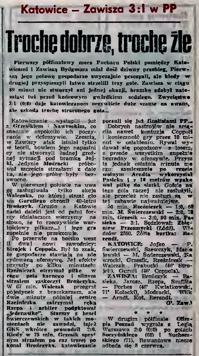 „Gazeta Pomorska” z 16.05.1991 o meczu Pucharu Polski GKS Katowice – Zawisza (15.05.1991).