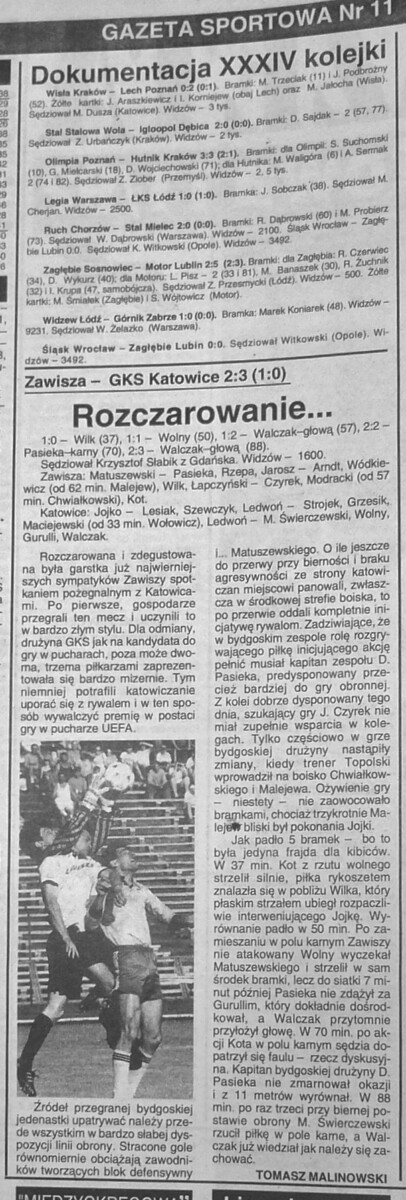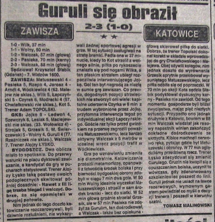 Katowicki „Sport” z 22.06.1992 o meczu Zawisza – GKS Katowice (20.06.1992)