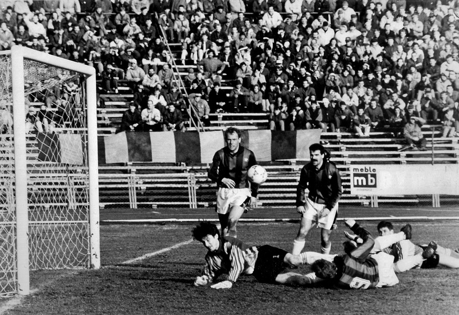 Zawisza – GKS Katowice 1:0 (27.03.1993). Piłkę złapał bramkarz gości Janusz Jojko. Zawodnicy Zawiszy w koszulkach w pasy. Z lewej Tomasz Szuflita, a z prawej Dariusz Pasieka. W białych koszulkach katowiczanie: drugi z prawej Marian Janoszka, z numerem 10 Marek Świerczewski i z numerem 7 Piotr Świerczewski.