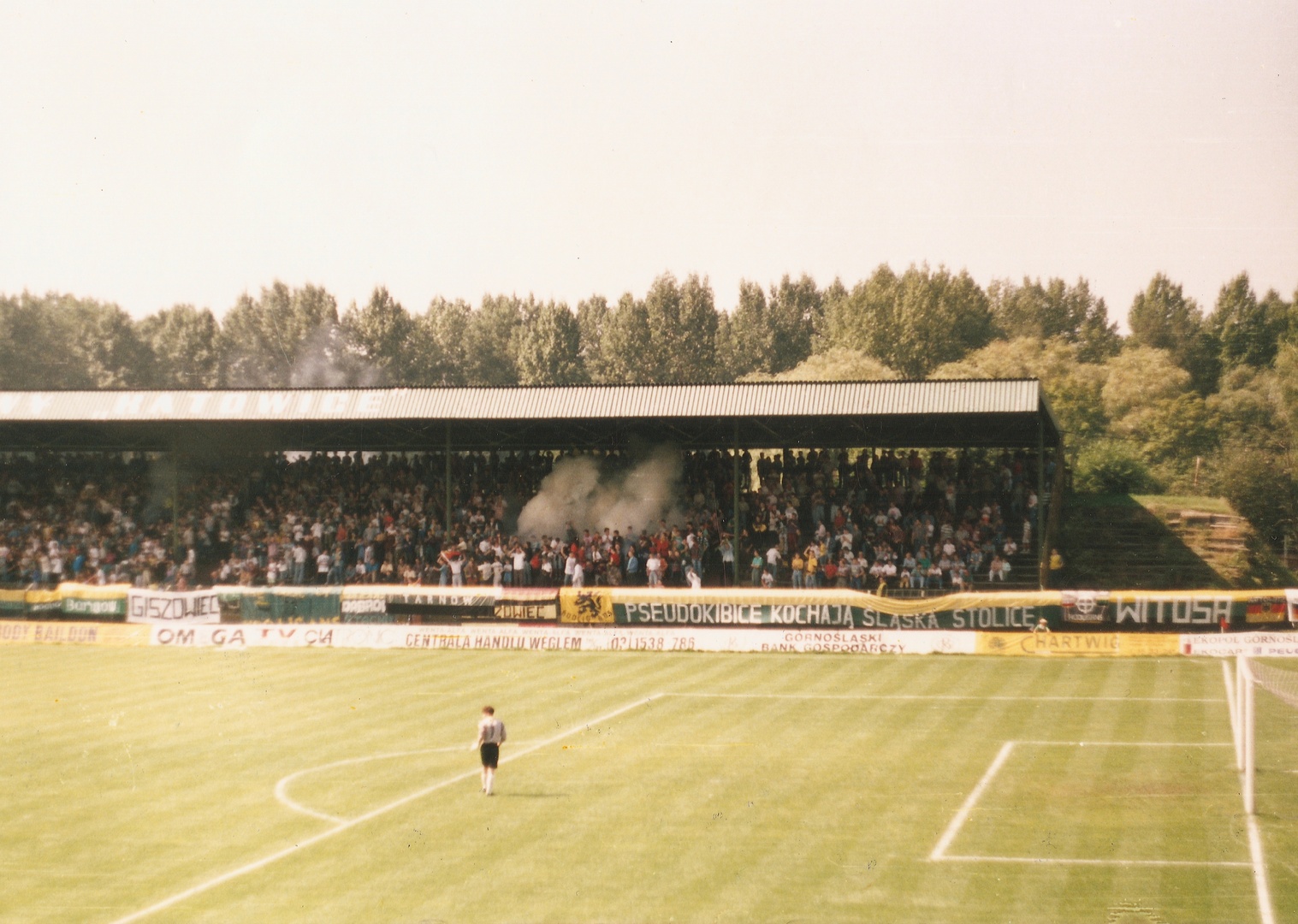Oflagowanie m.in.: GKS \G/ KATOWICE, JAWORZNO, (L) DO KOSZA, GISZOWIEC, PIEKARY ŚL.GISZOWIEC (PL),1993-1994 GISZOWIEC, TARNOWSKIE GÓRY, PIEKARY ŚL.! OK OCZYWIŚCIE GKS, (L) DO KOSZA, GKS FAN CLUB IMIELIN, ULTRAS, CHEŁM ŚLĄSKI, ŻORY, WITOSA, BOGUCICE, BAŃGÓW, GISZOWIEC, GKS, THE BEST OF HOOLIGANS, KOSTEK DĄBROWA GÓRNICZA, TARNÓW, GISZOWIEC (Niemcy),THE BEST OF HOOLIGANS (lew), PSEUDOKIBICE KOCHAJĄ ŚLĄSKA STOLICĘ, WHITE BOYS KOSTUCHNA, WITOSA, WITOSA.