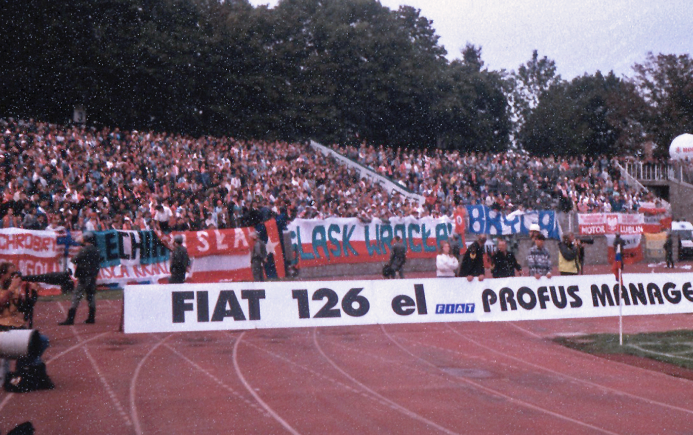 Dochodzimy pod stadion, a tam lata 90-te w pełni. Już z daleka widać ganianki.
