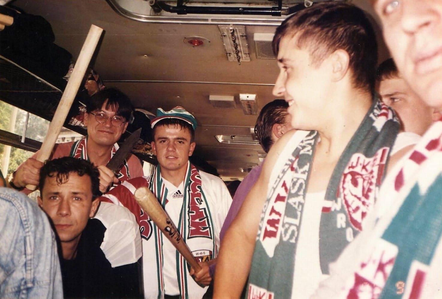 Cały czas dalej awantury w pociągu i jeden tyszanin latający z bagnetem.