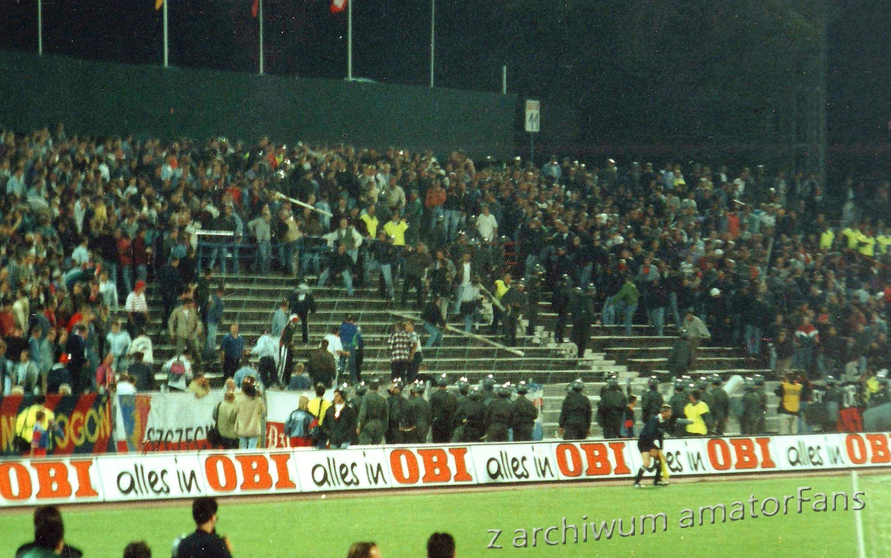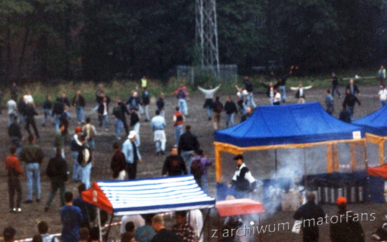 Ten mecz wywołał u kiboli dość małe zainteresowanie. Do Zabrza w większości jechały tylko kilkunastoosobowe „delegacje” poszczególnych grup kiboli. Najlepiej liczebnie prezentowali się gospodarze – Górnik Zabrze (młyn ok. 500) i trójkąt Lech (30) – Arka (podobno 4 autokary) – Cracovia (30). Pozostałe grupy kibiców zameldowały się w następujących ilościach: Zagłębie Sosnowiec – 30 (powinno nas być więcej; w ten sam dzień o 16.30 mieliśmy swój mecz w Leszczynach i część ekipy, która tam była chciała do Zabrza jechać, ale po zakończeniu meczu w Leszczynach nie dopuściły do tego psy), Legia Warszawa – 40, Pogoń Szczecin – 15, ŁKS Łódź – 10, Jagiellonia Białystok – 12, Śląsk Wrocław – kilku, Lechia Gdańsk – kilku, Wisła Kraków – kilkunastu, Ruch Chorzów 10, Zagłębie Lubin – 3, Radomiak Radom – 10. Niektóre liczby są przybliżone, czyli mogą wyniknąć pewne nieścisłości. Ponadto byli kibice m.in. Amiki Wronki, Piasta Nowa Ruda, Hutnik Kraków (chyba), Gwardia Koszalin (z Arką). NI było fanów Widzewa Łódź (Mistrz Polski) i Zawiszy Bydgoszcz. W sektorze kibiców Niemiec zasiadło ok. 400 osób, z czego ok. 300 chuliganów (tak pisano w gazetach). Na pół godziny przed meczem 20 Niemców wybiegło ze swojego sektora i pobiegło w stronę kibiców Górnika Zabrze. Jednak „Górnicy” pokazali na co ich stać, czyli uciekli. Potem Niemcy spalili flagę Polski za co mieli dym z psami, kilku z nich zostało zawiniętych. Zresztą Niemcy kilkakrotnie walczyli z psami. Z osiągnięć Polaków: Pogoń i inni kibice ze środkowego sektora walczyli z policją, po wcześniejszej nieudanej próbie ruszenia na Niemców. Kibol Wisły zrobił sobie wycieczkę po flagę Cracovii, ale gdy dobiegł i zaczął ją szarpać- nawet jej nie potargał zanim zwinęła go policja. Kibice Katowic potargali flagę Niemiec (skąd ją mieli?). Po meczu na dworcu w Zabrzu było również wiele gonitw i starć.