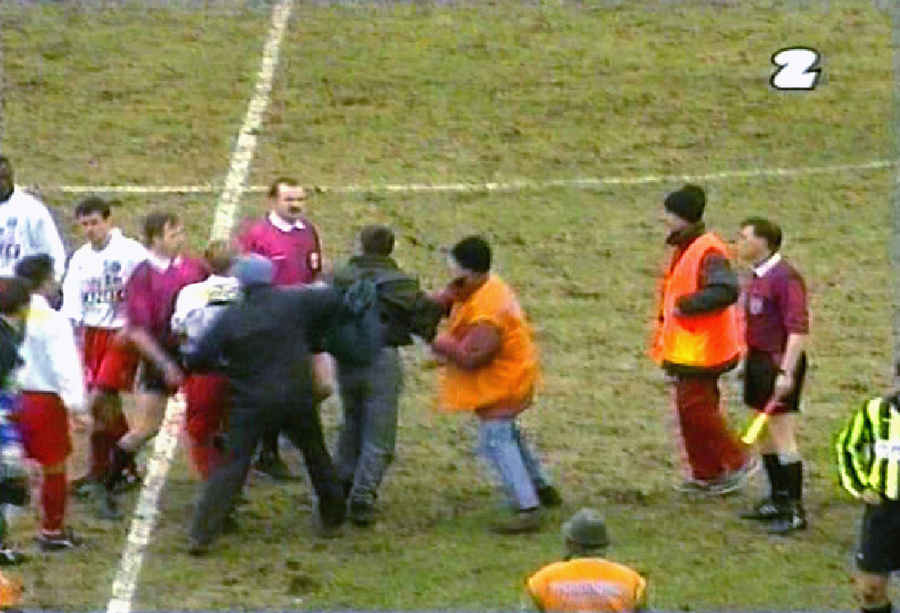 Na meczu z GKS-em Katowice, kibice Polonii wpadają na boisko w celu obicia ich zdaniem nieuczciwego sędziego. Po meczu demolują mu samochód.
