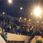 Podróż nad wyraz spokojna, ale w powietrzu czuło się, że będzie grubo. Rd i Kr (dwóch Berzowców) opowiadało jak było na pogrzebie śp. Przemka Czai w Słupsku. Milej się przysłuchiwało upłynniając zapasy, jakie miałem w plecaku. Do Katowic dojechałem już całkiem gotowy. Wygramoliliśmy się z dworca, gdzie częstochowskie pieski dostały wsparcie miejscowych, a że chwilę na to czekaliśmy, to zrobiłem się jakiś taki nerwowy. Nie pamiętam swojego bełkotu, ale zapewne fonia jak i wizja mojej osoby, którą odbierał dowodzący „naszymi” kundlami – skądinąd znany mi już wcześniej z paru incydentów – nie była najciekawsza. Na głowie (nie na twarzy) miałem założoną kominiarkę w barwach, ale ta była jakoś tak niedbale uformowana, że od razu zauważalne były otwory na oczy i usta.