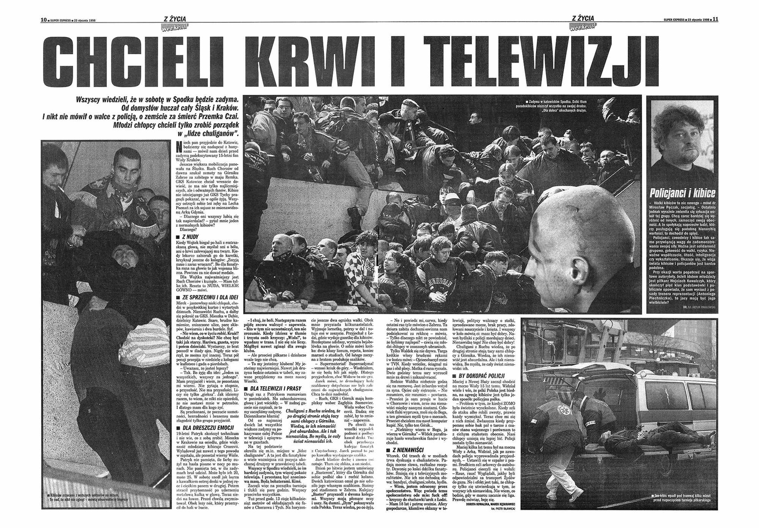 Wszyscy wiedzieli, że w sobotę w Spodku będzie zadyma. Od domysłów huczał cały Śląsk i Kraków. I nikt nie mówił o walce z policją, o zemście za śmierć Przemka Czai. Młodzi chłopcy chcieli tylko zrobić porządek w „lidze chuliganów”…