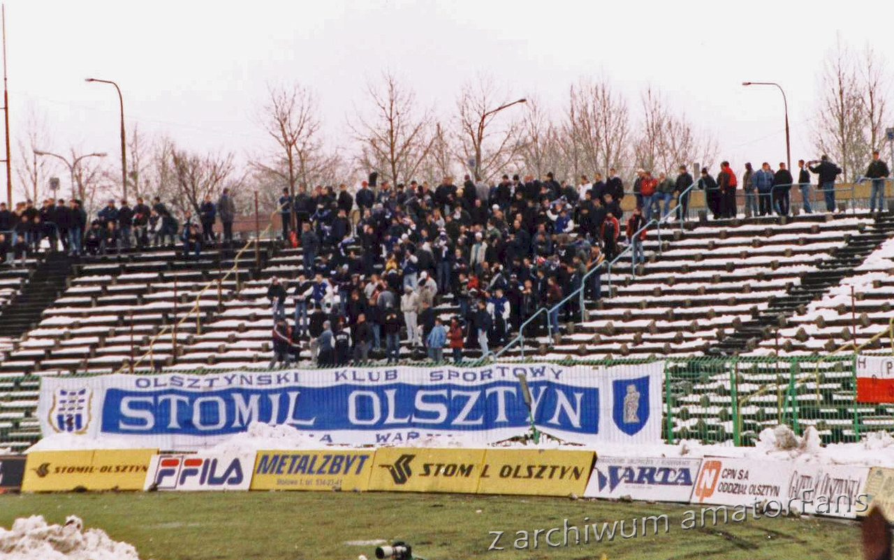 To była dla nas inauguracja rundy wiosennej. Pierwszy mecz, wyjazd i w dodatku na drugi koniec Polski. To mogło być powodem małej frekwencji. Na ten mecz jechaliśmy w kilku grupach i różnymi sposobami. Jedna z grup (5 osób) wjechała do Częstochowy aby tam wsiąść do pociągu jadącego do Olsztyna. Chłopaki mieli do pociągu około 2 godziny. Na dworcu w „Świętym” mieście pałętało się kilku medalików. Zaczęło się od sprzedaży naszym kilku butów. Goście od nas się trochę rozdzielili. Jeden z nich kiedy próbował dostać się do pociągu dostał butelką po głowie. Po około 20 min. odzyskał przytomność ale zwijali go właśnie do szpitala. Goście z Kluczy (4) zostali zaatakowani przez kondoniarzy (Stomil – 30 osób). Poza obfitą mordą strat nie było. Należy się im uznanie za to że nie stracili ani flagi ani szala. Nas na stadionie 13 osób. Stomil próbował jebnąć nam flagi, ale nic im z tego nie wyszło. Z naszej strony zero dopingu. Stomil odpalił race. Na uwagę zasługuje fakt, że kiedy wybierali się po nasze flagi psy nic im nie zrobiły. Po meczu gadka z naszymi „skórokopami” żeby wzięli nas do autokaru ale podobno nie mieli miejsca??? W drodze powrotnej kondoniarzy dość konkretna grupa ścigają samochodem gości od nas, którzy też wybrali ten środek transportu. Do niczego jednak miedzy nami nie doszło. Na stadionie prócz obecnych było 4 kibiców GieKSy (to ta grupa która miała przygody w Częstochowie), nie ujawnili się ale siedzieli wśród kiboli Stomilu.