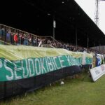 Oflagowanie: NET F@NS GIEKSA, PSEUDOKIBICE KOCHAJĄ ŚLĄSKA STOLICE, SK1964, VIP, GLADIATORS, GIEKSIARZE, GKS KATOWICE (z buldogiem).