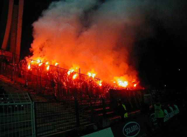 Na Pucharze Ligi w Poznaniu zjawia się 104 najwierniejszych fanatyków GKS-u. Z nami przyjaciele z Ostrawy z flagą „Apple Comando”. Poza płótnem Banika na płocie wieszamy jeszcze naszą flagę „VIP”. W sektorze gości dobrze się bawimy dopingując cały mecz, odpalamy też sporo pirotechniki. Pyry także ultrasują i prezentują swoje sektorówki.