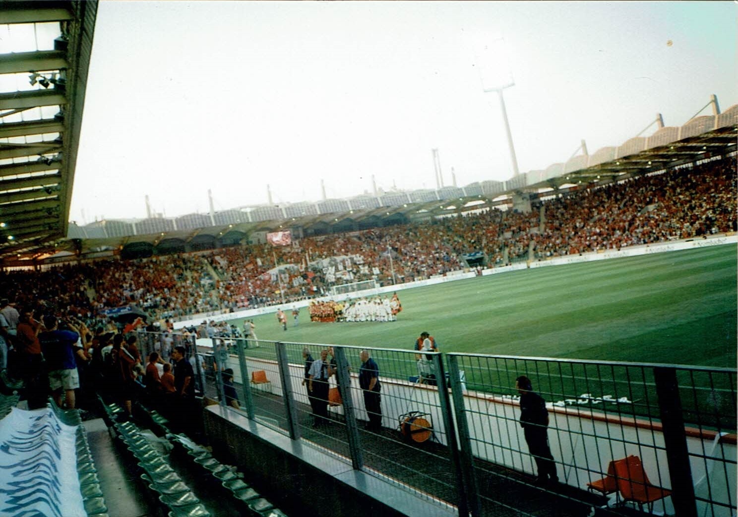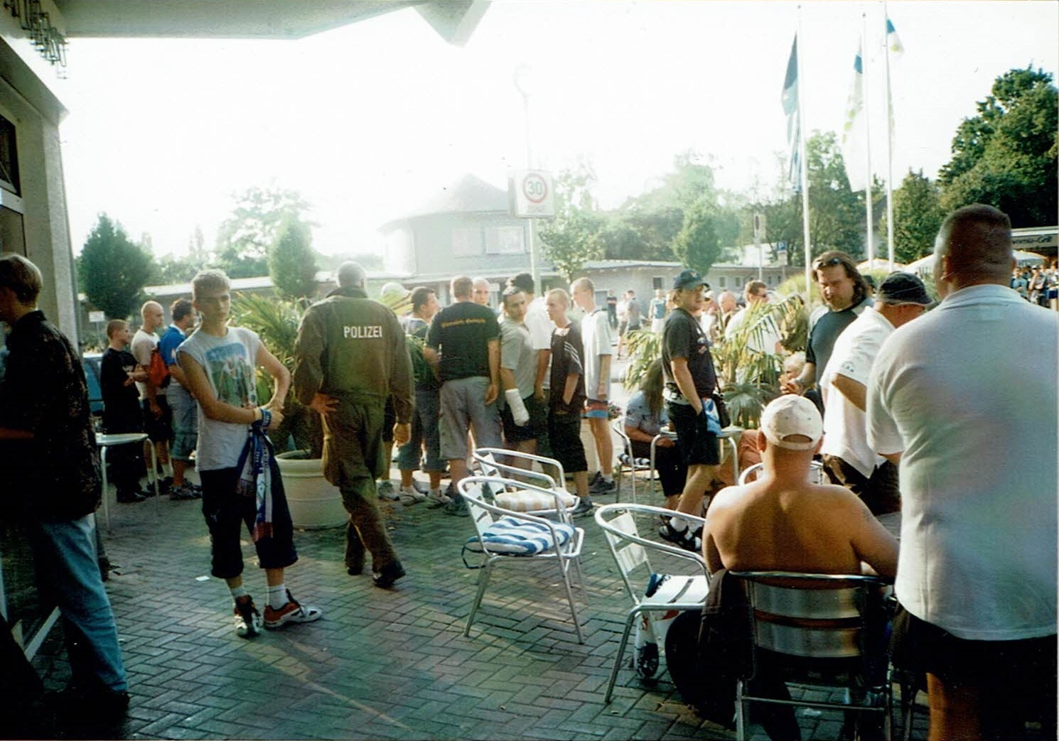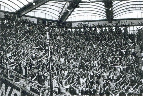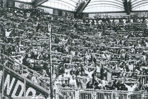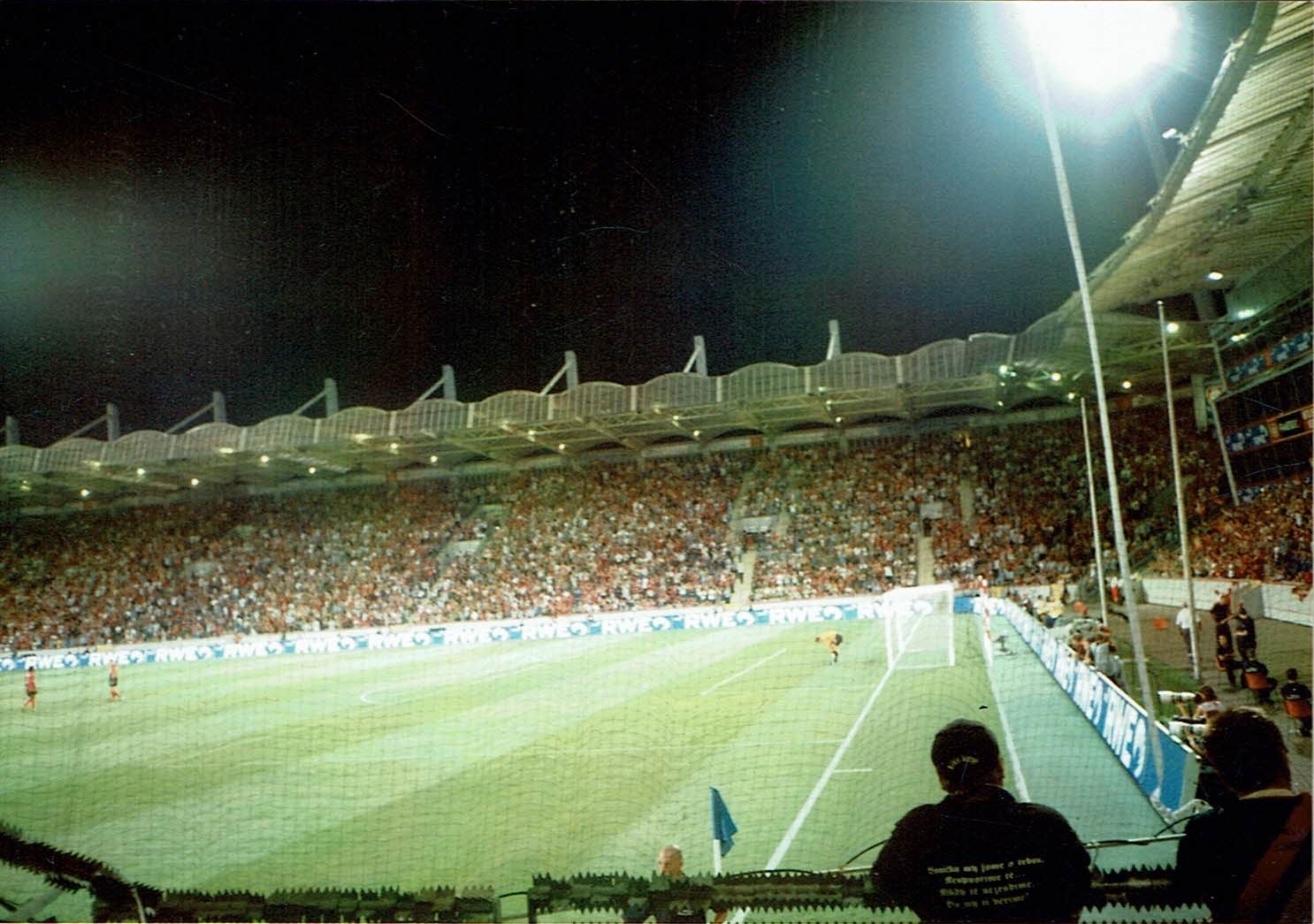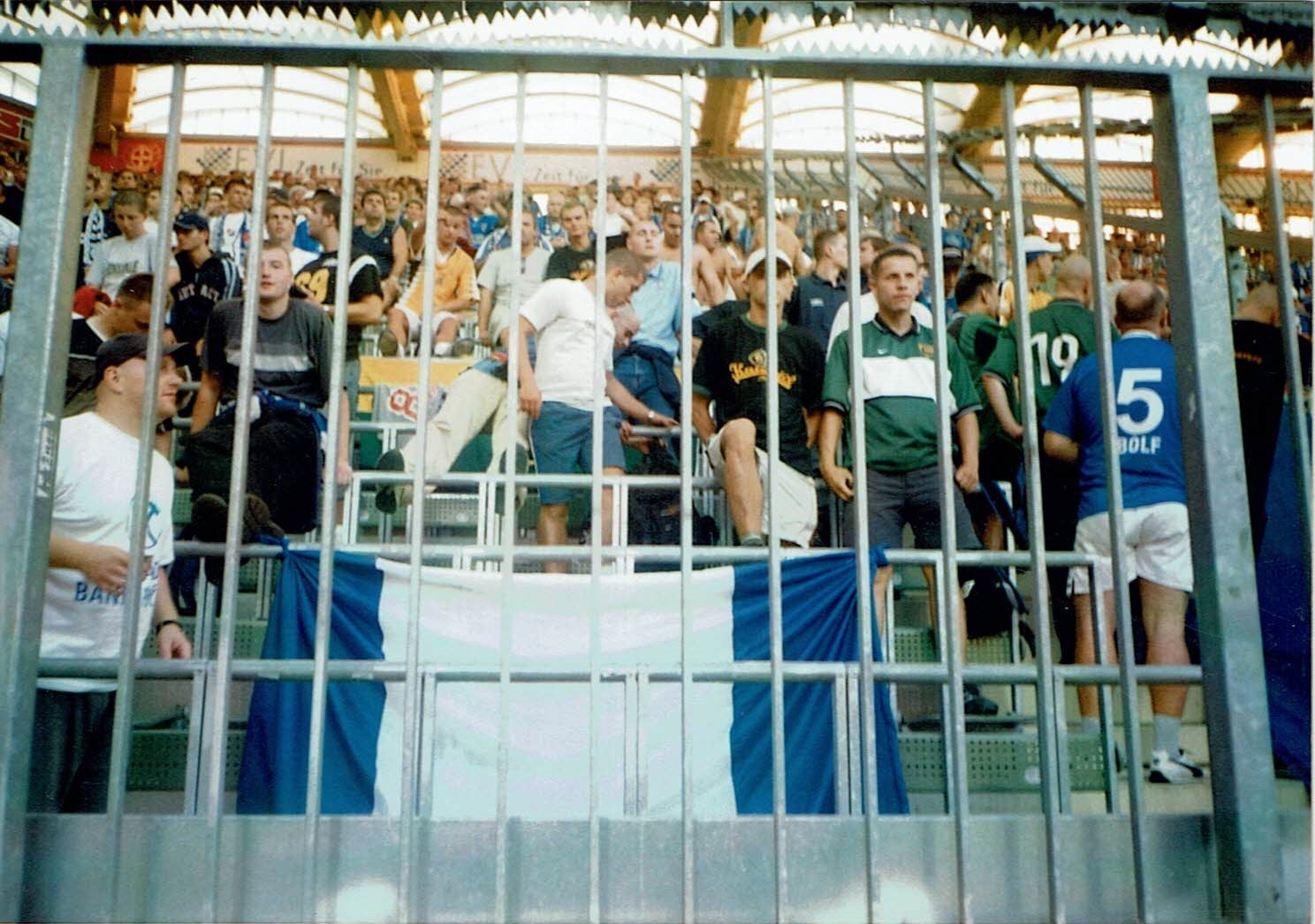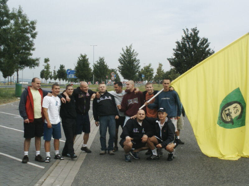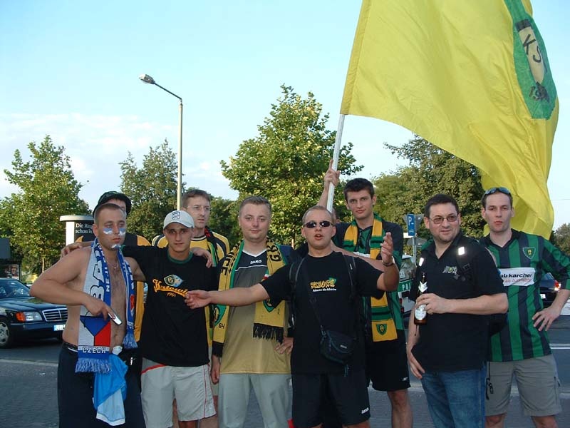 Pierwszą połowę jest doping na bardzo dobrym poziomie, chwilami nawet nie można słyszeć własnego słowa. W drugiej połowie wyciągamy oprawę z herbami FCB, GKS oraz FCS i kontynuujemy  fanatyczny doping, który nasila się po każdym golu w naszej bramce. Na koniec tych golów naliczono pięć i mimo to wszyscy do końca meczu śpiewają tańczą i bardzo dobrze się bawią. Po końcowym gwizdku piłkarze z daleka dziękują, co się nam nie spodobało i po tym pod sektor podchodzą P. Besta oraz M. Papadopulos których wysyłamy do szatni po resztę drużyny. W końcu przychodzą naprawdę wszyscy i dziękują nam za doping. Zrozumieli ze w chuju mamy ze przegrali – ważne ze wiedzą ze jesteśmy ciągle z nimi… i co najważniejsze ze jesteśmy z nimi w chwilach gorszych. Po tym przekazie wsiadamy do aut i autokarów, oraz niektórzy czekają aż ich kierowcy autokaru skończą 8-godzinową przerwę na spanie, z czego była niemiecka policja pewnie szczęśliwa.