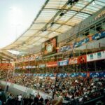 Banikowci się rozchodzą na miasto – niektórzy na piwo, inni do aqua parku, a reszta po prostu leży wszędzie gdzie się nie popatrzy. Na stadion większość wchodzi na półtora godziny przed meczem. Na sektorze mamy naprawdę dużą ilość flag, przez co części z nich nawet nie wywieszamy, bo po prostu nie ma miejsca. Chacharów jest na sektorze coś około 1400. W większości fani z Ostrawy mają ubrane meczówki lub białe koszulki.