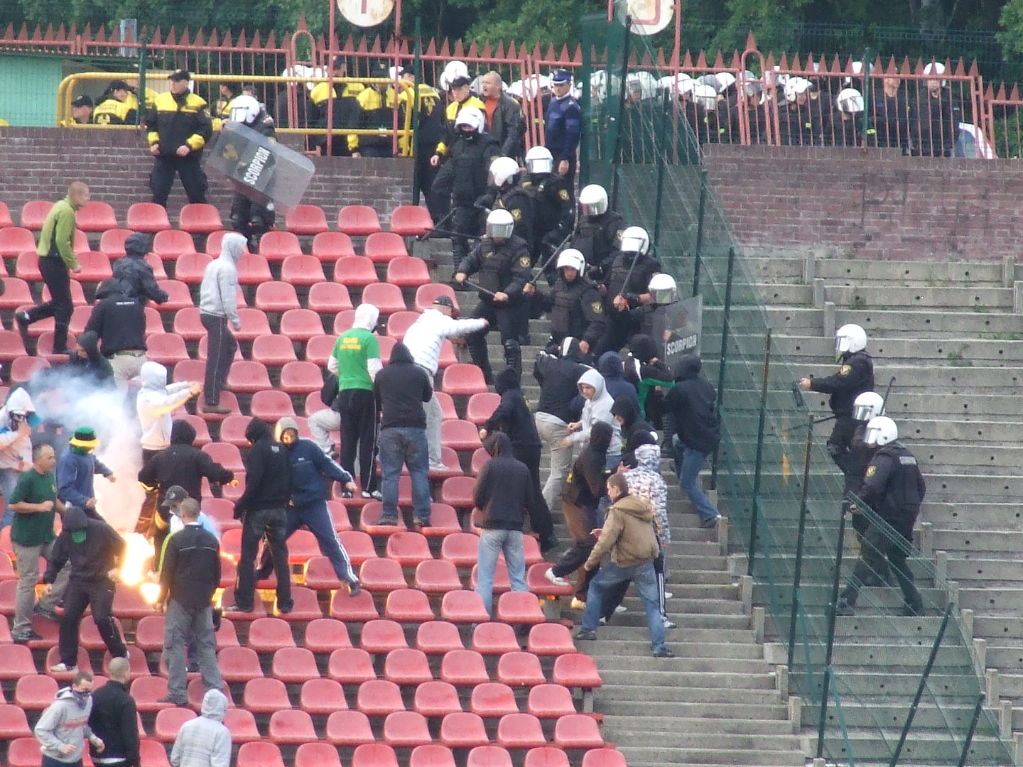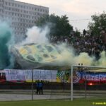 Wyjazd do Jastrzębia na szpil z tamtejszym GKS-em elektryzował każdego GieKSiarza już na długo przed dniem, w którym miało odbyć się to arcyważne spotkanie. Nie trzeba chyba nikomu przedstawiać relacji, jaka jest między obydwiema ekipami, zresztą relacje te nawet udzielają się działaczom, szczególnie tym z Jastrzębia. Najpierw dogadali się z naszymi, na mocy czego Jastrzębie dostało 800 wejściówek na szpil w Katowicach i tyle samo mieliśmy dostać my. Sprawdziło się stare powiedzenie, że z gorolami żadnych układów się nie robi, bo zawsze będą starać się wykolegować drugą stronę, tak też było tym razem i na kilka dni przed spotkaniem dowiadujemy się, że pula wejściówek została ograniczona do 500 sztuk. Liczba śmieszna, tym bardziej, że spotkanie to decydowało o pozostaniu w lidze bez konieczności gry w barażach. Oczywiście nie było mowy o dostosowaniu się do chamskiej zagrywki goroli i planujemy najazd na Jastrzębie w znacznie wyższej liczbie. Zaczynając od początku… w Katowicach ciśnienie na szpil bardzo duże, wiele osób kombinowało sobie wolne w pracy lub szkole na długo przed datą wyjazdu. Zapisy na dzielnicach potwierdziły, że mogliśmy się spodziewać nowego rekordu wyjazdowego do Jastrzębia. Spotykamy się wszyscy w Katowicach pod OBI. Już tamto miejsce wskazywało, że ten wyjazd będzie jednym z lepszych w tym sezonie. Po pewnym czasie ruszamy w podróż, najpierw ruszają 4 busy przegubowe, które zostały szczelnie wypełnione, a za nimi kordon ekipy samochodowej w obstawie sporej ilości suk. Mimo bliskości Jastrzębia, na trasie robimy postój w celu załatwienia potrzeb, co dezorganizowało ruch na drodze. Po ponad godzinnej podróży docieramy do Jastrzębia, gdzie dość sprawnie jesteśmy kierowani na parking przy stadionie, który okazał się za mały tego dnia. Na stadion najpierw zostaje wpuszczona grupa autobusowa, która była już w posiadaniu biletów. Reszta wiary musiała niestety przejść małą drogę przez mękę aby wejść na stadion, działacze Jastrzębia chyba nie wyciągają żadnych wniosków jak takie sytuacje się kończą i dochodzi do małego spięcia z ochroną, małe gazowanko, trochę zamieszania i po chwili dowiadujemy się, że będą bilety dla nas. Słowa zmieniają się w czyn i wchodzimy od około 20 minuty na szpil.Niestety, cała ekipa samochodowa nie zobaczyła tego dnia jedynej bramki spotkania, która dała nam utrzymanie w lidze. Jednak nie zmienia to faktu,że zabawa na trybunie była wyśmienita. Doping rewelacyjny, tylko chwilami słabł, ale bardziej za sprawą unoszącej się chmury gazu, aniżeli braku chęci. Ostatecznie sektor wypełniliśmy w liczbie 1227 osób, wspierała nas zabrzańska Torcida w sile 80 osób, Banik około 40 osób i JKS Jarosław 10 osób. Wielkie dzięki za wsparcie! Na płocie wieszamy kilka flag m.in. „GKS KATOWICE”, „GieKSiarze”, „SK1964” oraz prezentujemy kozacką oprawę: sektorówkę, trans „Silesian Hunters” oraz trochę pirotechniki. Pod koniec szpilu kibole Jastrzębia i ich zgody wszczynają mała walkę ze Scorpionami, na naszych sektorach również krótkie spięcie z ochroną. Znowu sektor pokrywa się wonią gazu i trochę nam to przeszkadza w prowadzeniu dopingu. Po chwili wszystko wraca do normy, a my wyczekujemy ostatniego gwizdka sędziego, rozładowując ogromne napięcie głośnym dopingiem. Po chwili już wszyscy cieszą się, jakbyśmy co najmniej zdobyli awans o klasę wyżej i co tu by dużo nie mówić, gdyby nie fatalna gra pseudo grajków w pierwszej rundzie, to może właśnie w Jastrzębiu cieszylibyśmy się nie z utrzymania, a z awansu. Przez kilkanaście minut świętujemy wraz z piłkarzami coś co po rundzie jesiennej wydawało się cudem, potem jesteśmy jeszcze trochę trzymani w klatce. Następnie wszyscy pakujemy się w nasze środki transportu i udajemy się do swoich miast, nasza ekipa w większości przypadków postanowiła przeciągnąć świętowanie do białego rana, co czynimy w większości swoich lokali i osiedli. Wyjazd jak najbardziej udany, cieszy progres wyjazdowy i miejmy nadzieję, że w przyszłym sezonie również licznie stawimy się na stadionach naszych ligowych rywali.