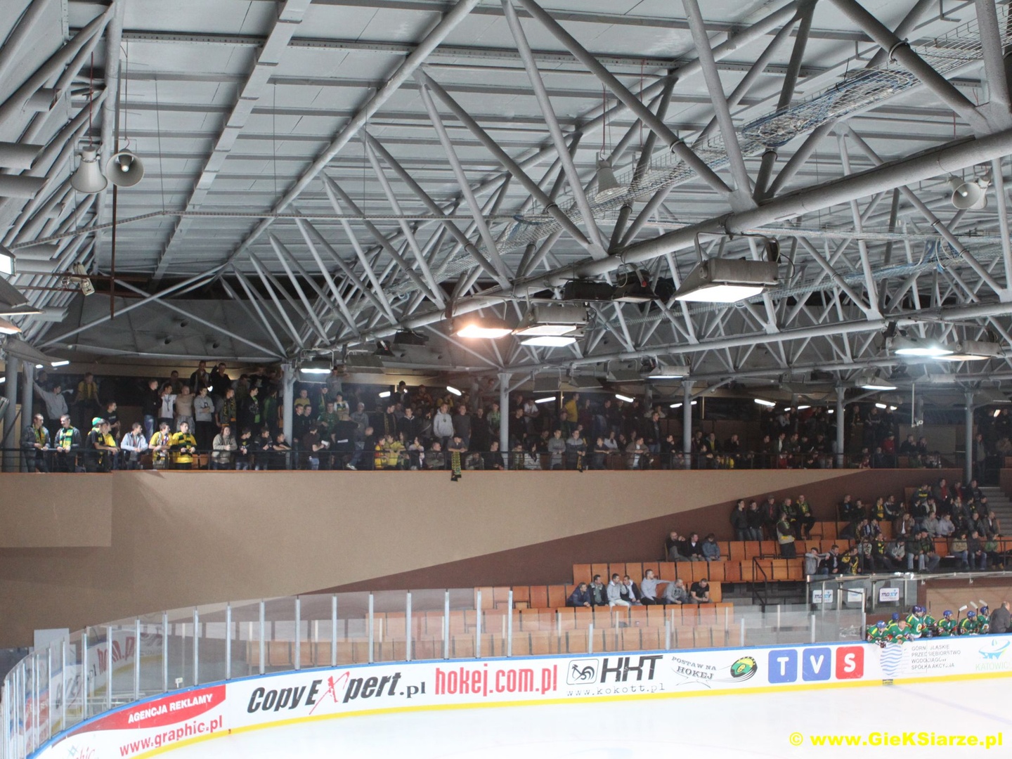 W sobotę o 18:30 odbył się jeden z najważniejszych meczy w sezonie czyli z Krynicą, która prócz nas jest jedynym sensownym kandydatem do awansu. Mimo, że kibice którzy dość licznie pojawili się w Satelicie i głośno dopingowali to jednak nie doczekali się zwycięstwa a szkoda, niemniej mecze z Krynicą jeszcze będą i trzeba wierzyć, że tym razem nasi hokejowi zawodnicy staną na wysokości zadania i pokażą tej wiejskiej drużynie, że awans należy się nam! Warto zaznaczyć, że przy meczach GieKSy w Krynicy 90% dopingu miejscowych „kibiców” to bluzgi na nasz zespół a u nas tylko głośny doping dla zawodników, więc komentarz zbędny.