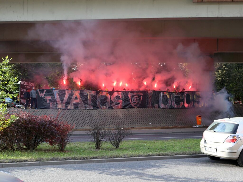 Przed meczem wspólną zbiórkę organizuje Witosa i Załęże. Po drodze prezentują folię „VATOS LOCOS” i odpalają przy tym sporo pirotechniki.