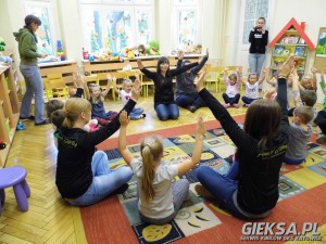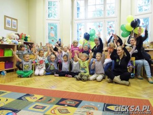 W piątek 4 października odwiedziłyśmy Miejskie Przedszkole nr 64 w Katowicach-Giszowcu. Pozostał po nas ślad – nie tylko na twarzach maluchów! Tym razem zajęcia rozłożone na grupę młodsza i starszą przebiegły w atmosferze świetnej współpracy z dyrekcją oraz przedszkolankami. Najmłodsze dzieci, którym klubowe barwy nie były obce, bez trudu poradziły sobie z nauką przyśpiewek i już po chwili ich głosiki można było usłyszeć chyba we wszystkich katowickich dzielnicach i nie tylko! Śpiewały nawet opuszczając sale na której odbywały się zajęcia. Doskonałą atrakcją była dla nich nauka zdrowej rywalizacji w drużynowych zabawach z piłką. Dowodem na to były radosne uśmiechy, nagrodzone na koniec balonami i pomalowanymi buźkami.