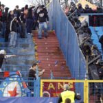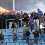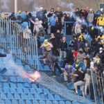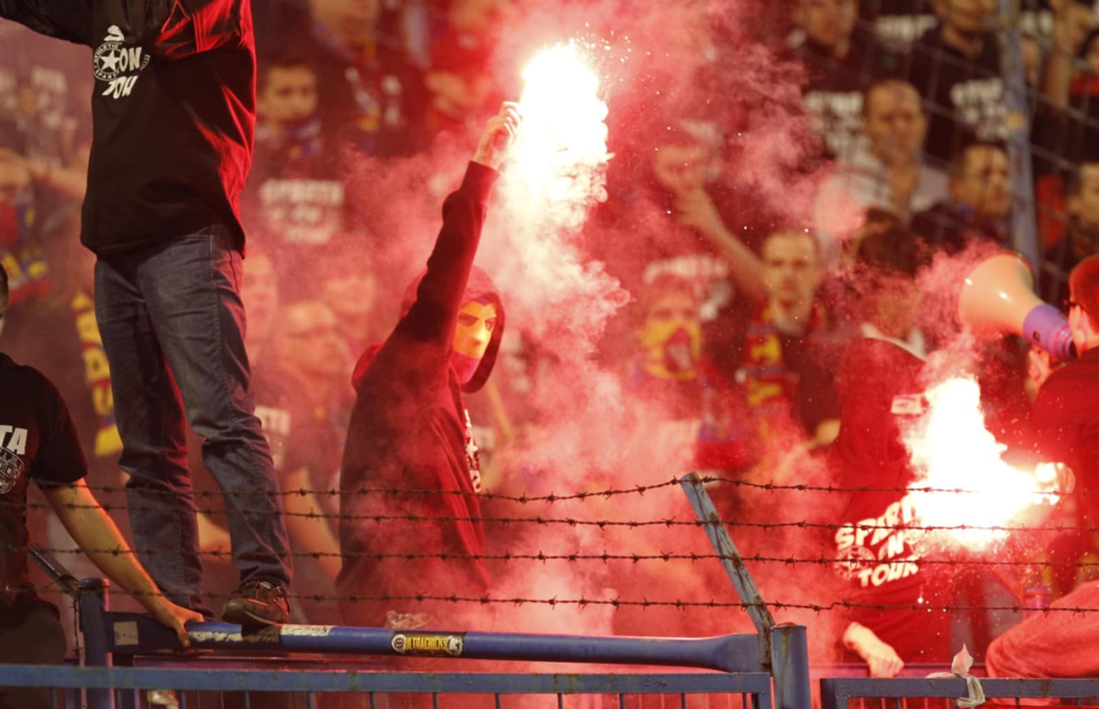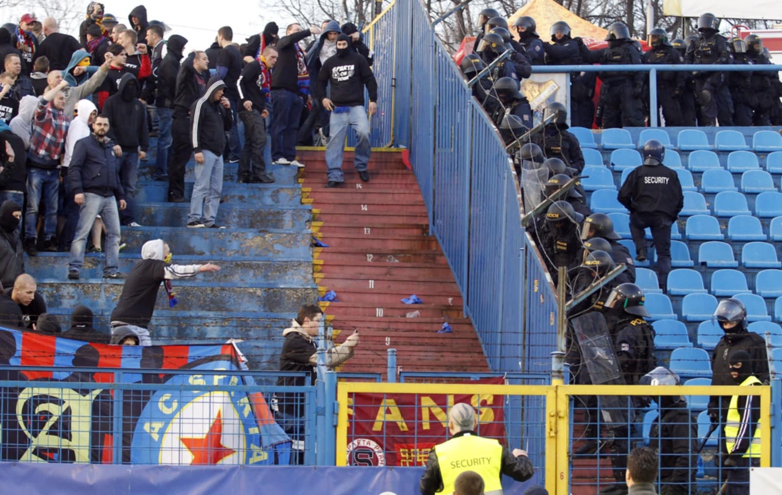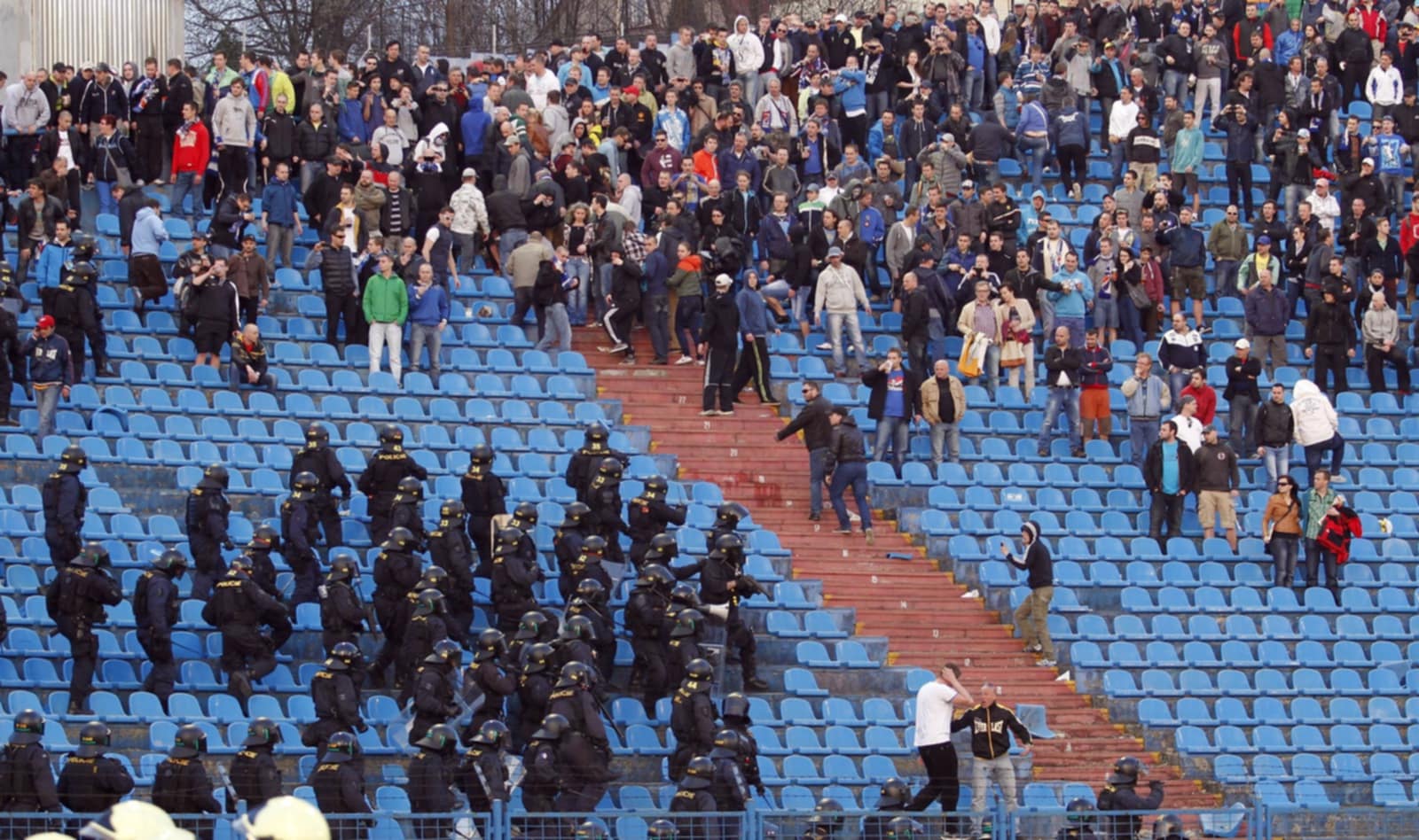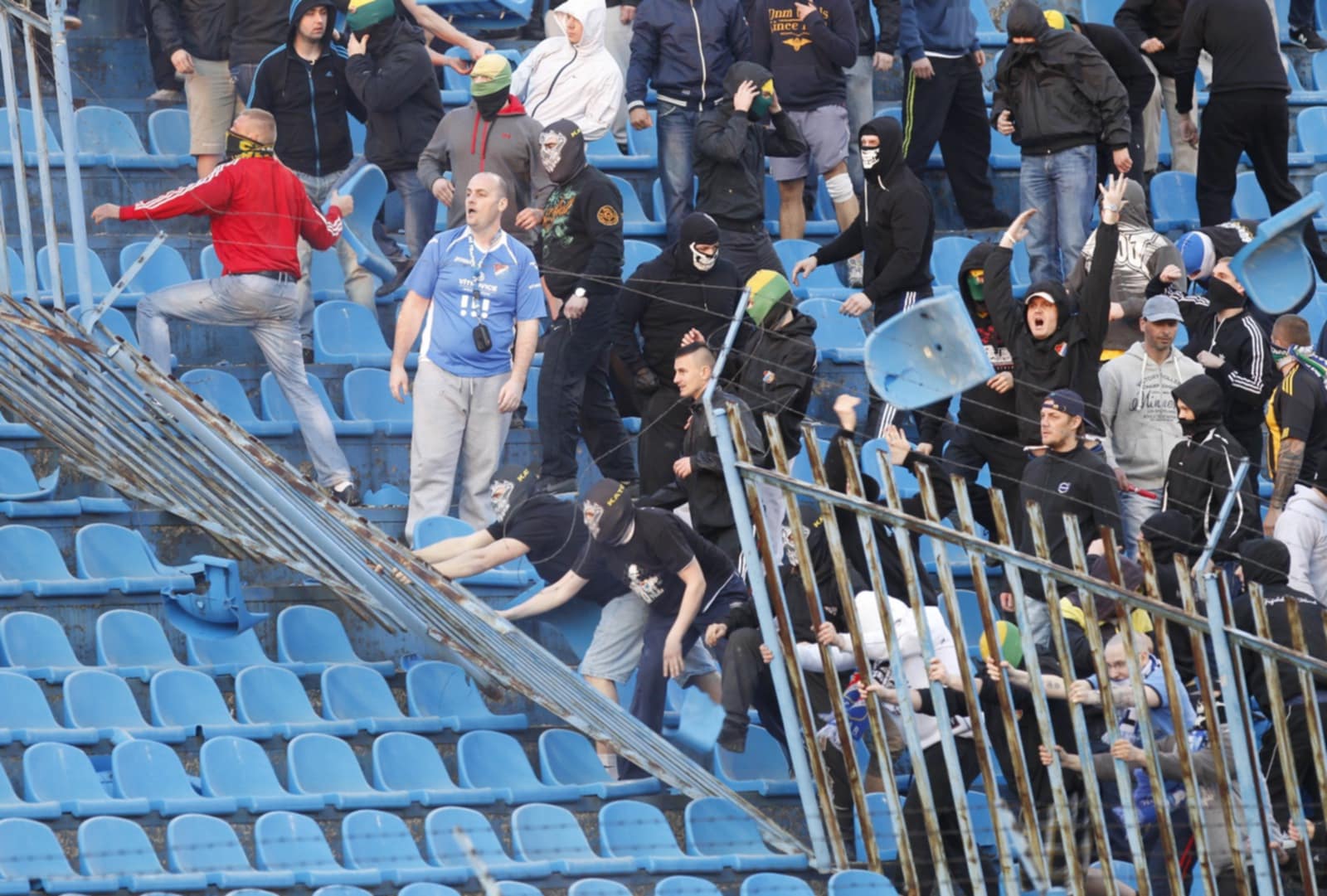 W przerwie meczu chuligani Banika i GieKSy szturmują płot dzielący bufor do sektora gości. Sparta próbuje zrobić to samo jednak z gorszym skutkiem bo nie udało im się przerwać ogrodzenia. Na dziurę w płocie po stronie gospodarzy zareagowała czeska prewencja częstując kogo popadnie granatami hukowymi. Od tego momentu zaczął się kilkunastominutowy maraton walk kibiców z policją. Gdy sytuacja się uspokoiła piłkarze wyszli ponownie na murawę i rozpoczęto drugą połowę spotkania.