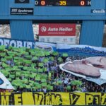 Na stadionie festiwal uprzejmości nie tylko poprzez śpiewy, ale równie oprawy. Choreografii nie zabrakło z żadnej strony, a nawet więcej: obie ekipy zaprezentowały po kilka opraw.