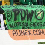 Z naszej strony dobry doping. Doping na który swoją grą piłkarze nie zasłużyli. Na płocie wśród flag wiszą dwa transparenty. Jeden dla chłopaków z Małopolski „PDW”, a drugi dla kibica z Giszowca któremu urodziła się córeczka.