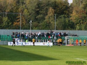 Spodziewaliśmy się, że w drugiej połowie gra będzie wyglądała przynajmniej tak samo, a przede wszystkim uda się podwyższyć prowadzenie. Jednak już od samego początku wyglądało to coraz gorzej. Gra katowiczanom się nie kleiła, a przeciwnicy starali się oddalić piłkę od własnej bramki. Fakt faktem, że piłkarskimi umiejętnościami nie grzeszyli, ale w naszych szeregach pojawiało się coraz więcej niedokładności, raziło zwalnianie gry. Przez to też nie stwarzaliśmy sobie wielu sytuacji. Najlepszą okazję w tej fazie meczu mieli rywale, którzy nie wykorzystali sytuacji sam na sam (strzał obok słupka). Kuriozalna była sytuacja, w której chyba z 6 razy próbowaliśmy wyprowadzić piłkę z własnego pola karnego i za każdym ją traciliśmy. To rywale prowadzili grę, a my próbowaliśmy wyprowadzać kontry. Jak na przykład akcja Pitrego, w której powoli, powoli zmierzał w pole karne i oddał… fatalny strzał. W 76. minucie rywale wyrównali. Po rzucie wolnym Pietrzaka Stomil przeprowadził groźną kontrę, która zakończyła się dośrodkowaniem z lewej strony i strzałem z najbliższej odległości do pustej bramki Dawid Szymonowicz trafił do siatki. Potem to goście bardziej starali się zdobyć drugiego gola, ale piłkę meczową mieli katowiczanie. W zamieszaniu podbramkowym dwa razy uderzał Goncerz, ale dwa razy świetnie interweniował Piotr Skiba. Wydawało się, że po ptokach, bo GieKSa niespecjalnie spieszyła się z atakowaniem. Dodatkowo trener Moskal na 90 sekund przed końcem wprowadził Dariusza Zapotocznego, co wywołało niemałą reakcję kibiców (i naszą), bo przecież nie było czasu…