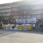 Na ulicy Miłej kulminacja naszego pochodu; zbieramy się na boisku, rozwijamy transparent GzG Gang i odpalamy masę pirotechniki min. race, strobo, achtungi i 6 dużych świec dymnych w trójkolorowych barwach. Zostawiamy też pamiątkę dla koleżanek zza miedzy, wytykając im niektóre cechy osobników stanowiących trzon ich „ekipy”. Niektóre, ponieważ nie wszystkie da się określić jednym słowem, po prostu KUrEWSTWO!