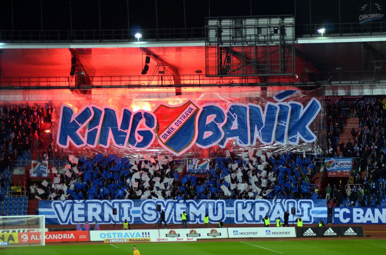 Tego dnia Ultrasi Banika chcieli powtórzyć wyczyn z ostatniego wyjazdu i przypominali fanom o zabraniu szalika. Efekt mówił sam za siebie. Dodatkowo przygotowano złożoną oprawę z podwieszanej foli na wysokości połowy trybuny o treści „KING BANIK”, co zostało uzupełnione chorągiewkami w barwach i transparentem „WIERNI SWOJEMU KRÓLOWI”, by finalnie podświetlić choreo racami. Całość dała mega efekt! Ogólnie na meczu 9945 widzów, w tym fani GieKSy w 20 głów. Goście obecni w 11 osób z mała flaga i dopingiem na miarę swoich możliwości.