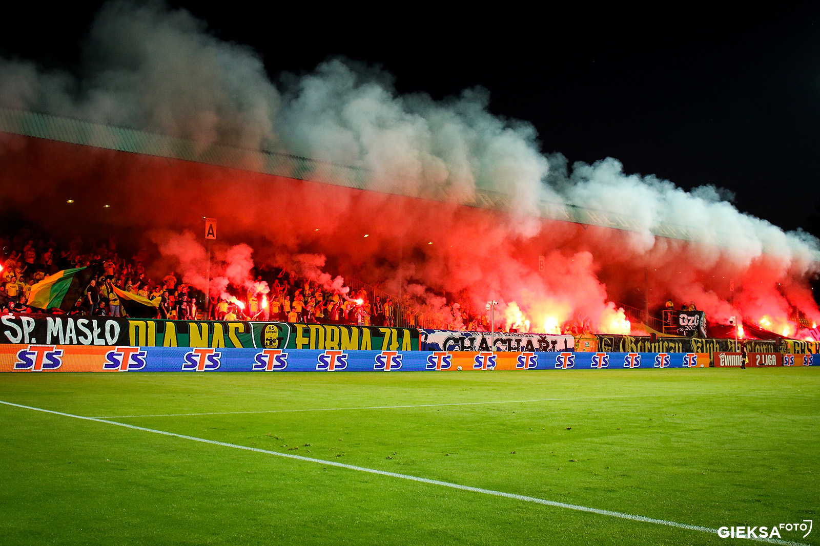 Czekaliśmy na taki mecz latami, w końcu dane nam było zobaczyć happy end. Zobaczyć i uczestniczyć w nim. W ten poniedziałkowy wieczór wszystko ułożyło się idealnie, zarówno na trybunach jak i na boisku. Gol na otwarcie, gol „do szatni”, gol podczas oprawy. Świetna sprawa. I taki piękny kibicowski klimat! Awans bez jakichkolwiek przypadkowych osób na Blaszoku, w blasku różnorakiej pirotechniki, w żółtych koszulkach, z szalami. Oby więcej było tak podniosłych meczów w przyszłym sezonie. To zależy również od każdego z nas!