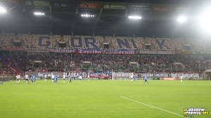 Na piątkowym spotkaniu przy Roosevelta w Zabrzu, wśród blisko 7,5 tysięcznej widowni zjawiło się kilkudziesięciu kibiców GKSu Katowice. Górnicy prowadzą dobry doping, w czym pomagały wydarzenia boiskowe, gdzie wśród sześciu strzelonych bramek, cztery należą do Górnika. Żabole upamiętnili kibica z gliwickiej Ligoty wywieszając transparent śp. Jaszczur, a także pamiętali o kolegach za murem „Cechu, Mario – Trzymajcie się”.
