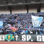 Warto również wspomnieć o przyjezdnych, którzy dotarli transportem kołowym w sile ok. 200 osób. Dobrze dopingują oraz prezentują sektorówkę w barwach oraz odpalają trochę pirotechniki.