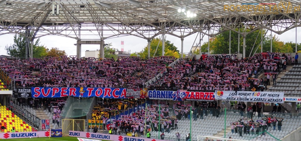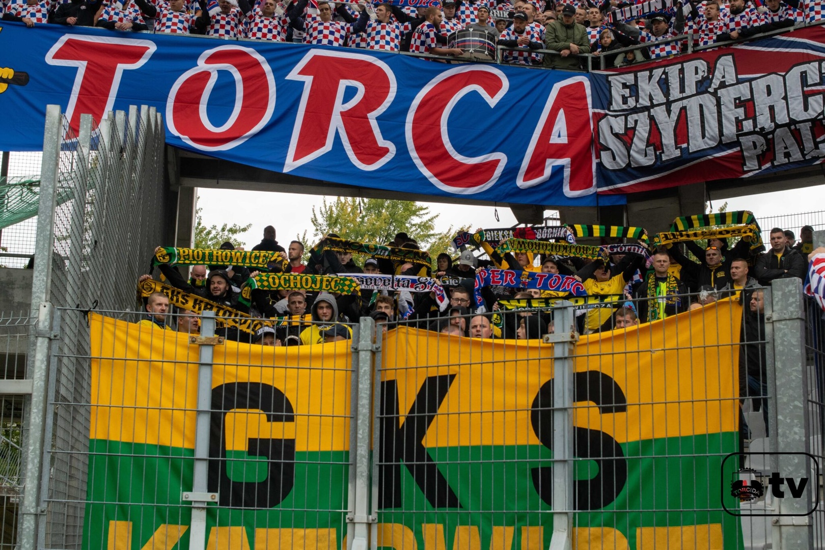 W ostatnim czasie mamy niemałe szczęście do meczów Górnika, które rzadko pokrywają się ze spotkaniami GieKSy, przez co często możemy wspomagać Żaboli na ich meczach. Nie inaczej było tym razem i w niedzielny poranek w stronę stolicy województwa Świętokrzyskiego udało się 99 GieKSiarzy! Górnicy za środek transportu wybrali pociąg specjalny, w którym przygotowano jeden wagon dla nas, dzięki czemu podróż minęła w dobrych humorach i komfortowych warunkach. W Kielcach meldujemy się już ok. 10:30 i przesiadając się na podstawione przeguby, sprawnie przemieszczamy się pod stadion Scyzorów. Na sektor gości łącznie wchodzą 1162 osoby i w tej liczbie jest ujęte 99 kiboli GieKSy, którzy przez cały mecz dopingują zza naszej flagi, która została powieszana w dolnej części trybuny (GKS Katowice tzw. gardina). Torcida tradycyjnie dopinguje na wysokim poziomie, pomagając w ten sposób piłkarzom przełamać typowy mecz walki na korzyść Zabrzan, którzy ostatecznie wygrywają 2-1. Kilka słów o gospodarzach, gdyż na uznanie zasługuje fakt, że podobnie jak w naszym przypadku, pozwolili Górnikowi zająć miejsca na ich sektorach przez co liczba Torcidy mogła być większa niż ustawowe 5%. Szacunek za takie podejście! Kibice Korony pojawili się na meczu w bardzo dobrej liczbie, zapełniając stadion w dużo większym stopniu niż na niedawnym meczu z nami. Młyn ulokowany na górnej części trybuny za bramką, również był solidnie nabity, a do tego ultrasi Korony zaprezentowali oprawę „Fanatycy Korony”, na którą składał się pokaźny transparent, sreberka, oraz żółto – czerwone świece dymne. Odpalone dymy na chwilę zasłoniły murawę, powodując tym przerwanie meczu. Generalnie widać, że awans do ekstraklasy dał kielczanom kopa również na trybunach.