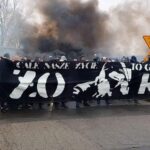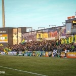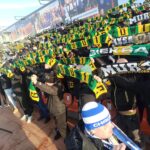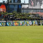 Miejscowi fani, zgromadzeni za trzema flagami, rozpoczęli doping przyśpiewką z uniesionymi szalami. My nieco spóźniliśmy się z odśpiewaniem hymnu, lecz widok tylu szali zapierał dech w piersi. Coś, co jest najprostszym symbolem starej szkoły kibicowania oraz niezmiennych zasad, widoczne w jednej chwili oddającej bractwo sprzymierzone pod tymi samymi barwami. Dopingowaliśmy cały mecz, z naprawdę dobrymi momentami, lecz mamy świadomość, że stać nas na więcej i nie każdy przyłożył się do tego, jak trzeba.