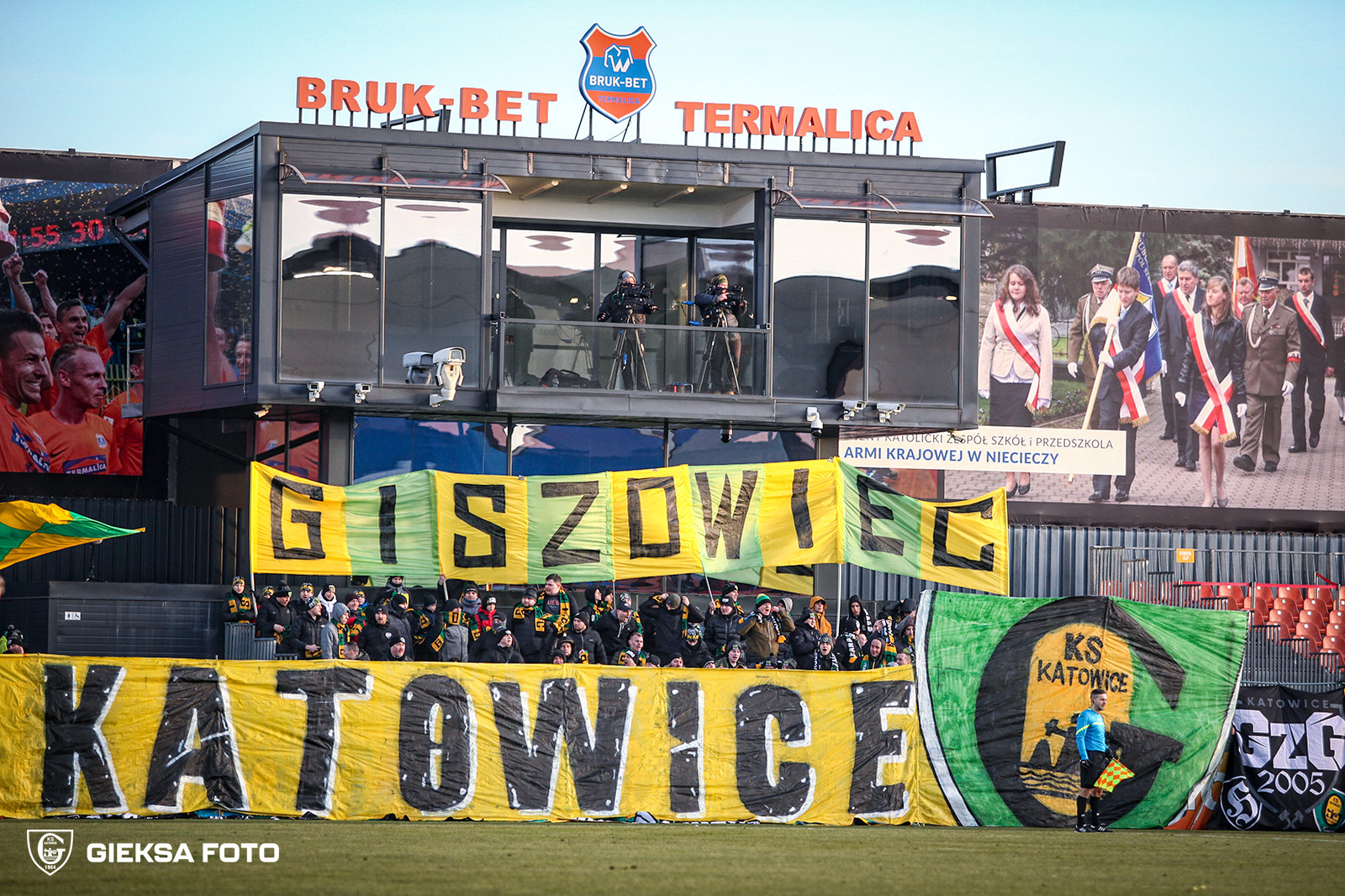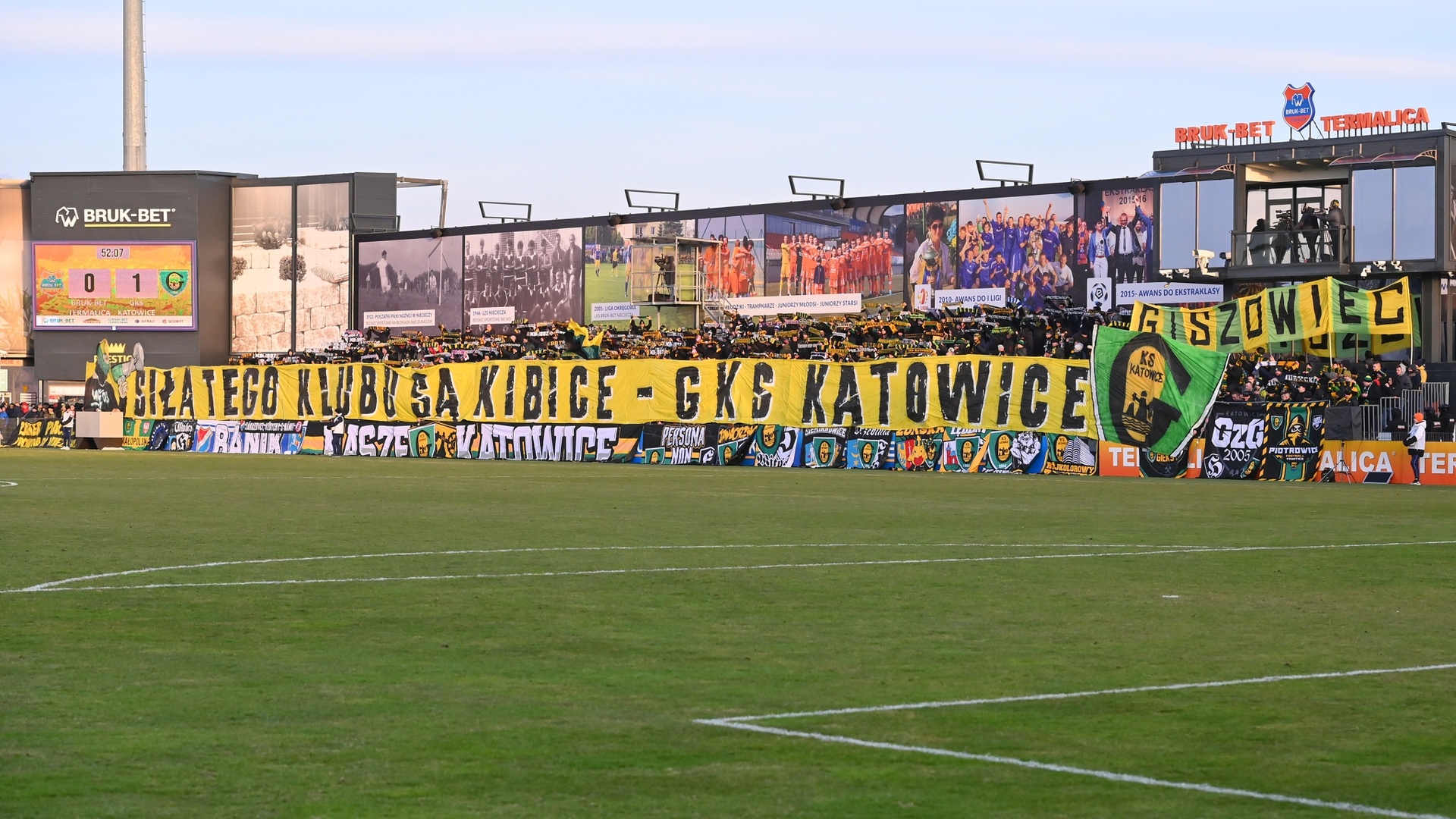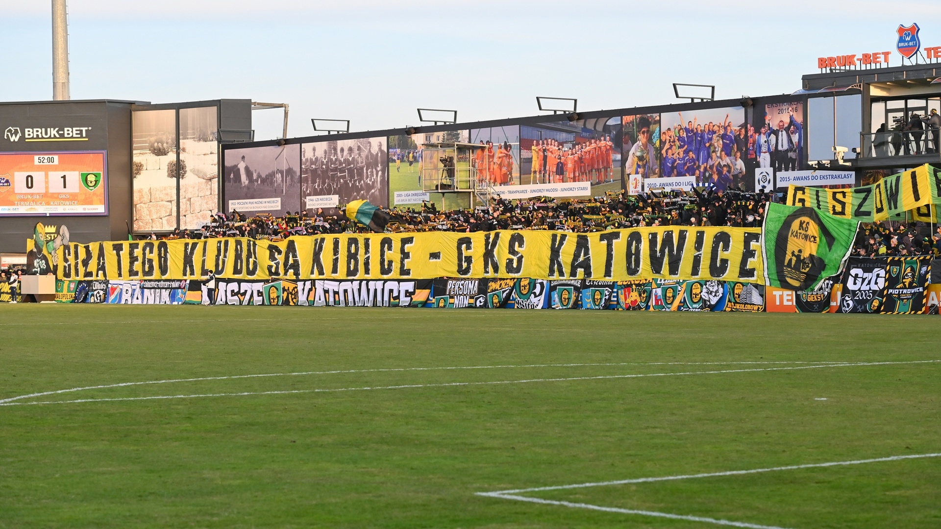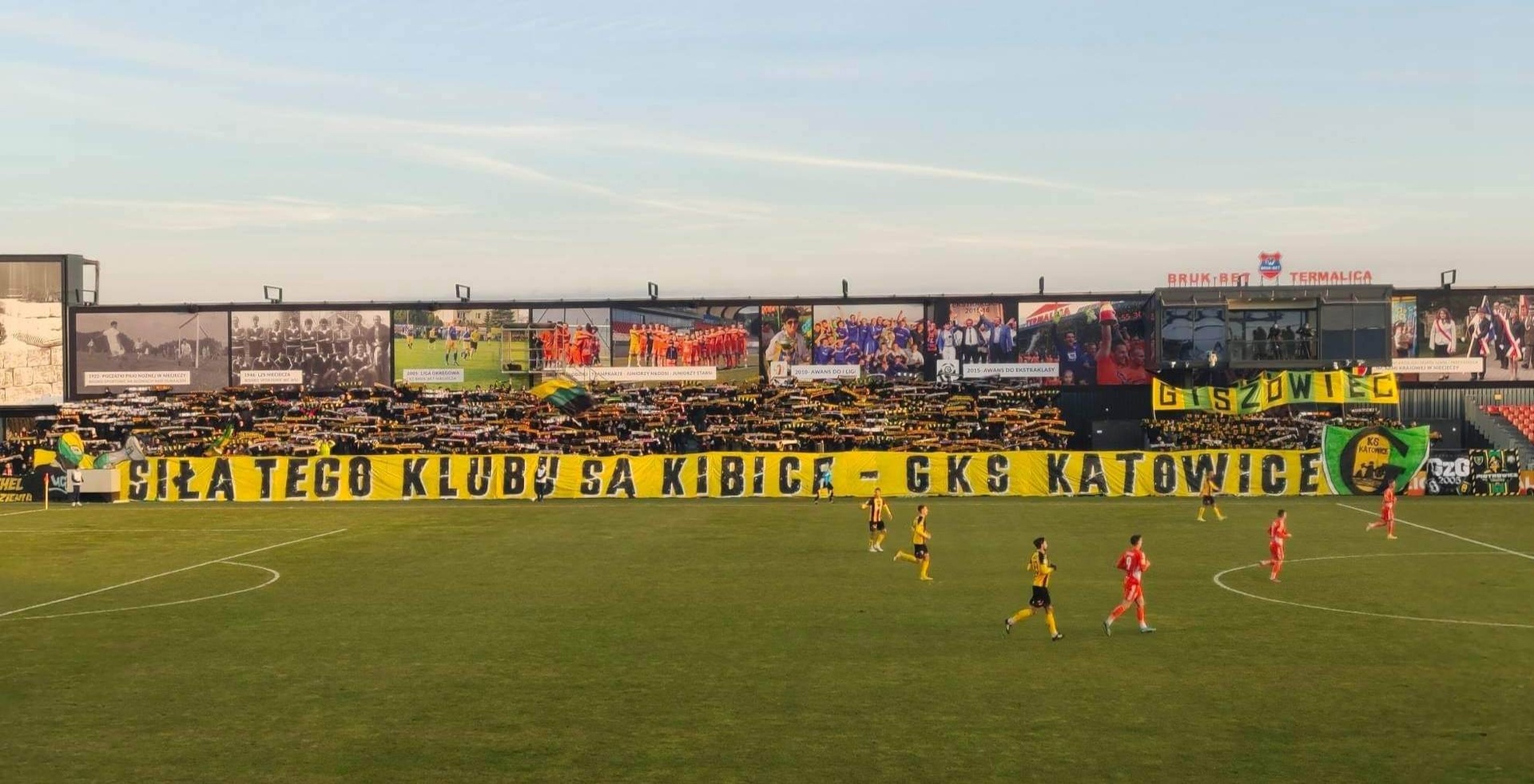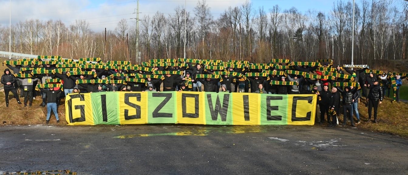 W drugiej połowie grupa Ultras GieKSa, na całą długość zajmowanych przez nas sektorów, prezentuje ogromny transparent z wizerunkiem kibola i herbu GieKSy, o treści „SIŁĄ TEGO KLUBU SĄ KIBICE — GKS KATOWICE”. Na początku, przez chwilę, trzymamy go nad ogrodzeniem, a w następnej fazie kładziemy go przed nim, odsłaniając tym samym morze naszych szali, co dało fajny efekt. Warto wspomnieć, że kilka naszych FC i dzielnic na ten wyjazd wydało nowe szale, w tym najliczniejsza tego dnia grupa z Giszowca (110 osób). GzG dodatkowo, na wzór swych szali stworzyło płótno z nazwą swej dzielnicy, które było widoczne przez większość spotkania.