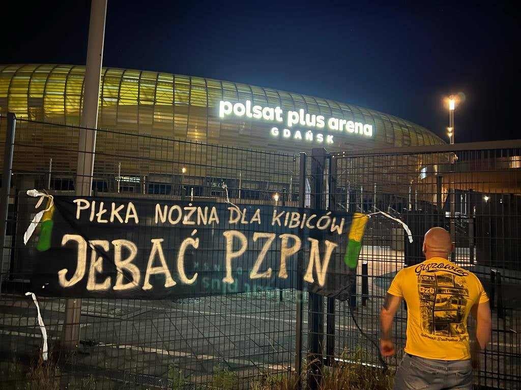 Ostatnio w Gdańsku biliśmy w 1999 roku i jeszcze sobie poczekamy. Pod stadionem obecna tylko nasza delegacja z przekazem „PIŁKA NOŻNA DLA KIBICÓW – JEBAĆ PZPN”.