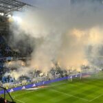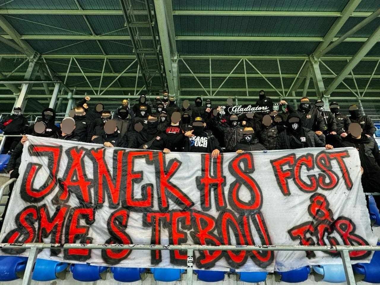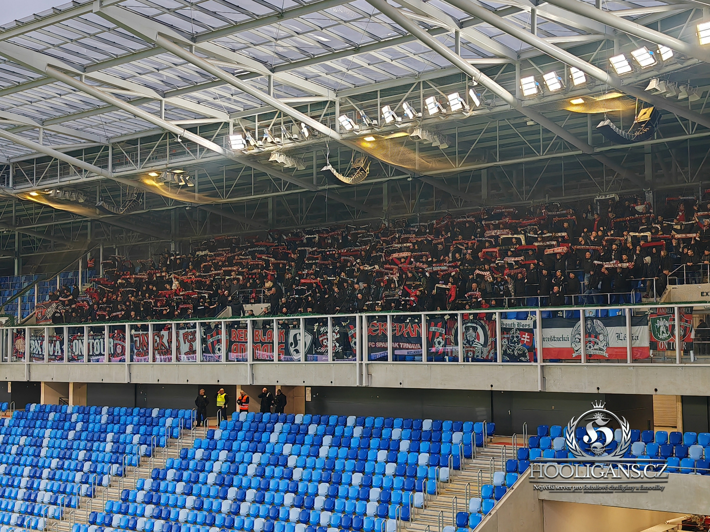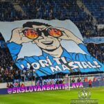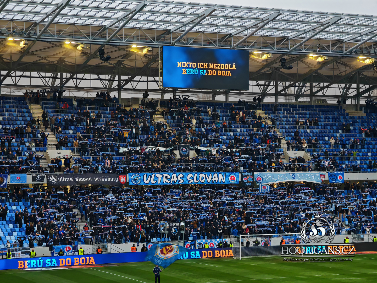 Słowackie derby, czyli mecz Slovanu i Spartaka to najciekawsze pojedynki piłkarskie i kibicowskie u naszych południowych sąsiadów. Tym razem przyszedł czas na starcie w stolicy na stadionie Tehelné pole, gdzie fanatycy Spartaka wybrali się koleją w 600 głów, w tym też wsparcie Banika, GieKSy (2) i ROW-u (8). Wszyscy byli ubrani tradycyjnie na czarno. W sektorze gości oprócz flag Czerwono-Czarnych, zawisł transparent dla fanatyka Banika, który trafił na przymusowe wakacje – Janek trzymaj się! Przez cały mecz „Białe Anioły” prowadzą dobry doping, przeplatany wymianą uprzejmości z gospodarzami.