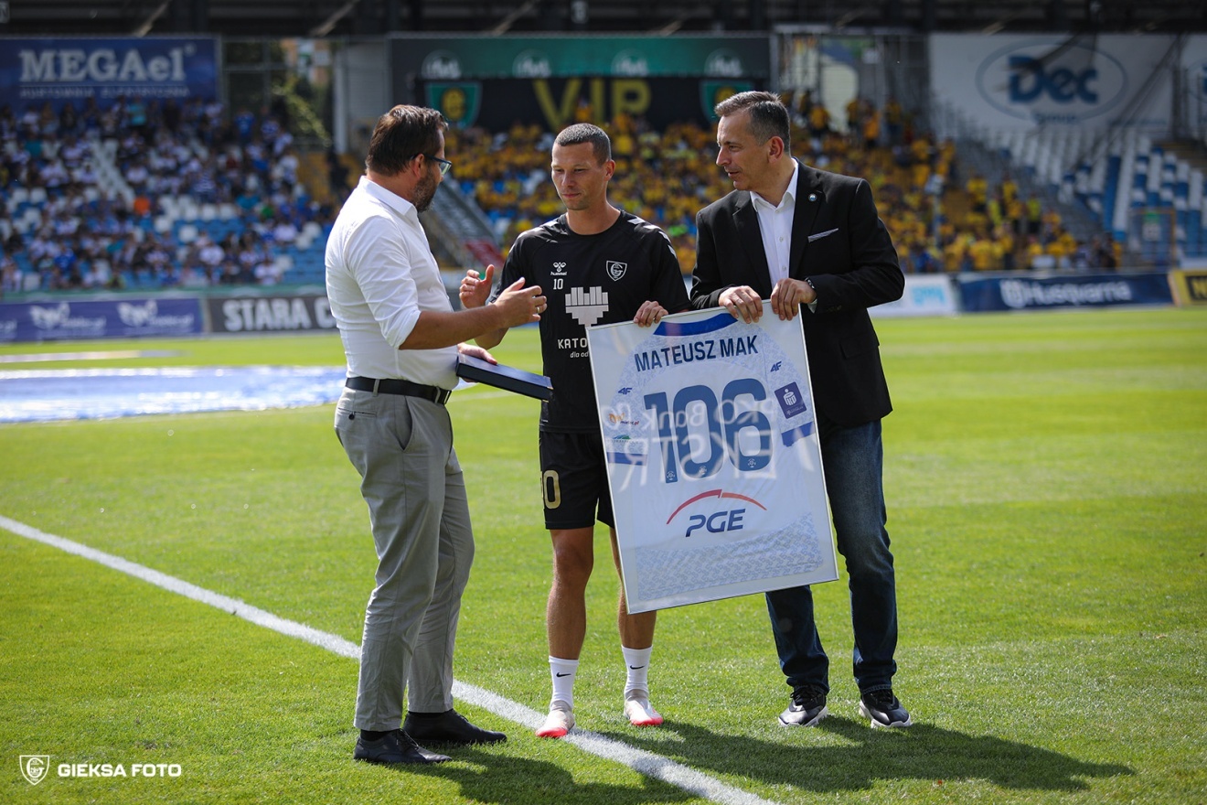 Przed meczem miejscowy zarząd uhonorował okazjonalna koszulką Mateusza Maka, który wcześniej grał w Mielcu. Na boisku zaś walka, w której nie zabrakło przelanej krwi. Zwycięstwo i zarazem pierwsze punkty padły łupem GKS-u, który zdobył jedynego gola w tym spotkaniu, po bezbłędnym rzucie karnym. Radość po bramce, jak i ostatnim gwizdku w naszym sektorze. W końcu do lidera mamy tylko 3 punkty straty!