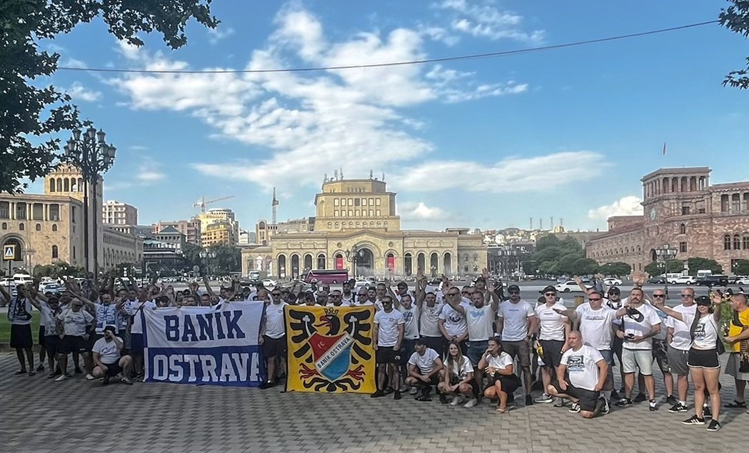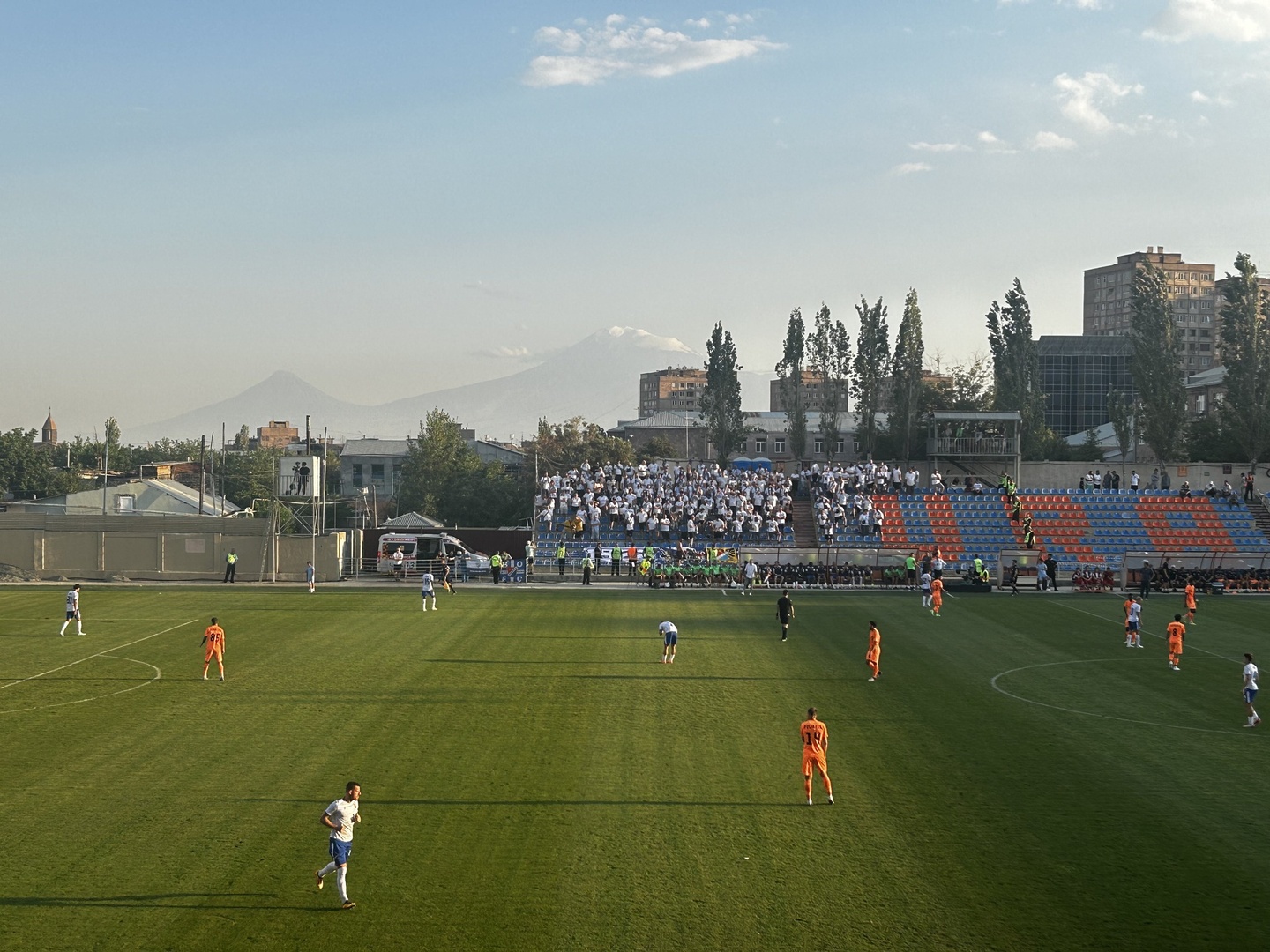 Wielu Chacharów potraktowało wizytę w Armenii jako wakacje więc pogoda nie mogła być inna jak upalne słońce. Na kilka godzin przed meczem wydawało się, że ostre promienie słońca zetrą nas z powierzchni ziemi, jednak na stadionie przywitał nas przyjemny chłodny wiatr i słońce schowało się za chmurami. Przed rozpoczęciem meczu w naszym sektorze pojawił się także właściciel klubu Václav Brabec, aby podziękować obecnym za wsparcie.