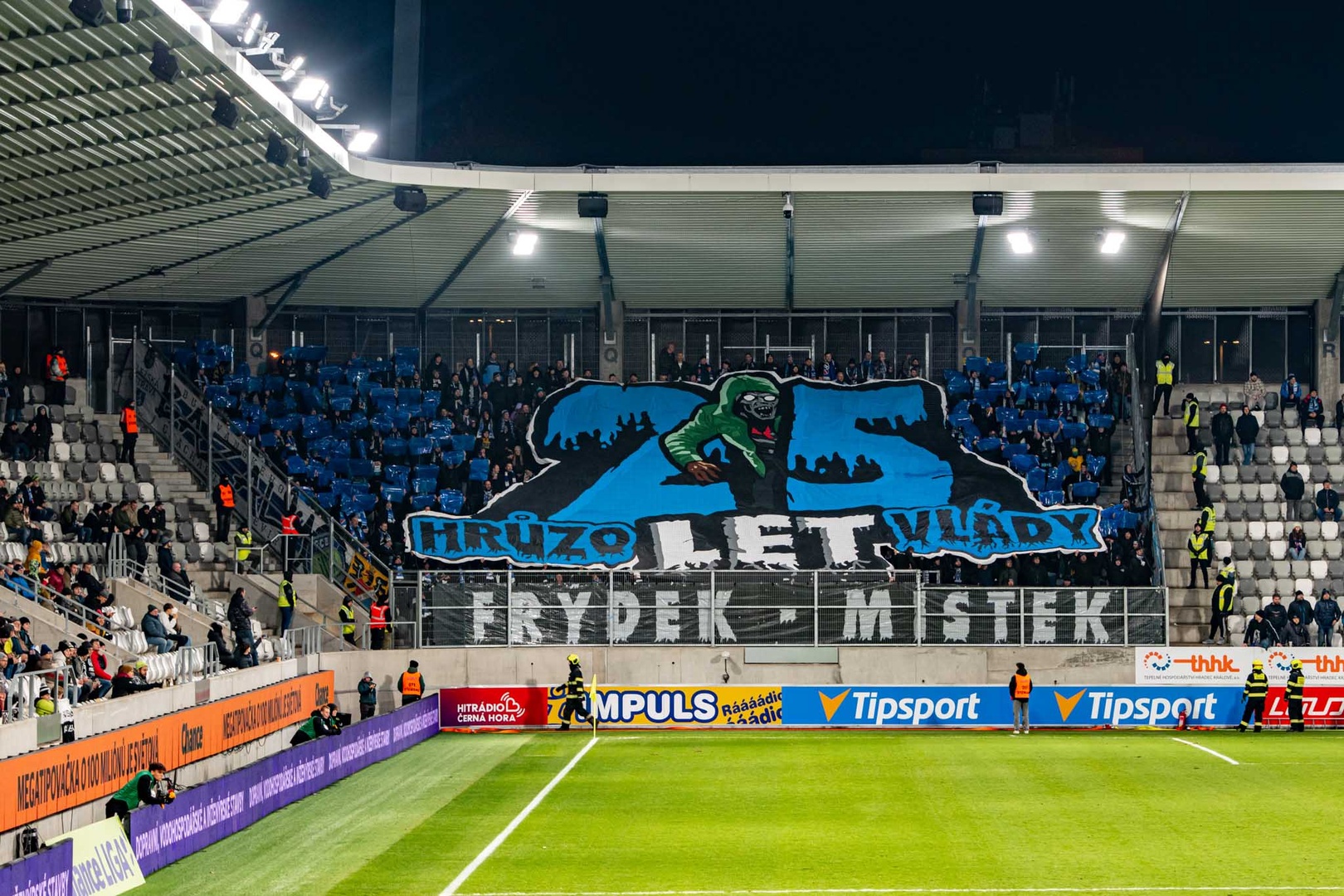 Przed rozpoczęciem meczu zamiast tradycyjnych flag na płocie, zawisł biały napis „Frýdek Místek” na czarnym plastiku, informujący na czym skupiać się będzie przygotowana choreografia. I rzeczywiście, kilka minut po gwizdku otwierającym, nad obecnymi uniosła się malowana plandeka przedstawiająca umarlaka i napis „25 let hrůzovlády”. Po bokach Chachary unieśli niebieskie folie, a anonimowe postacie w kapturach dodały do tego blask rac. Wszystkiego najlepszego i życzymy co najmniej kolejnych dwudziestu pięciu lat na scenie! Poza tym mieliśmy ze sobą machajki lecz ochrona ich nie wpuściła. Weszły tylko dwie które były na wędkach. Miłośnikom flag z pewnością nie umknął fakt, że na płocie zadebiutowała nowa flaga Frýdku Místku, dokładnie odwzorowująca wygląd ich zasłużonej flagi (upiększała stadiony przez cały okres istnienia fanklubu).