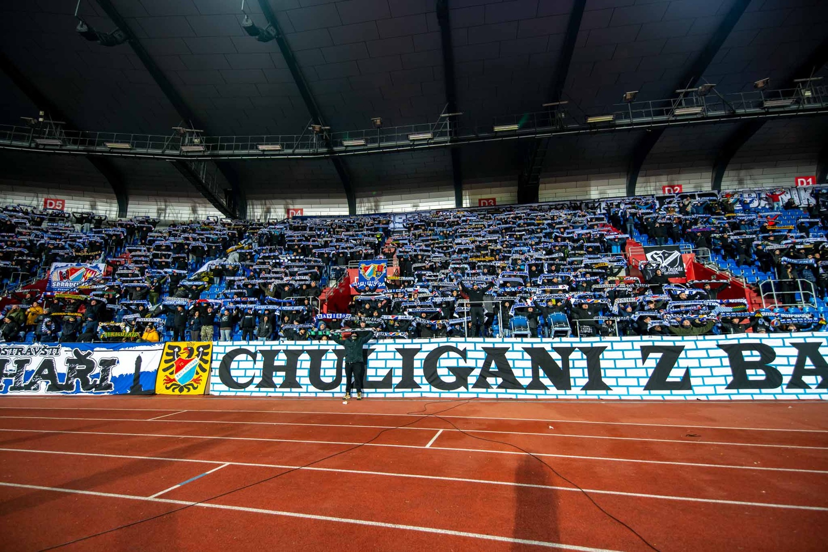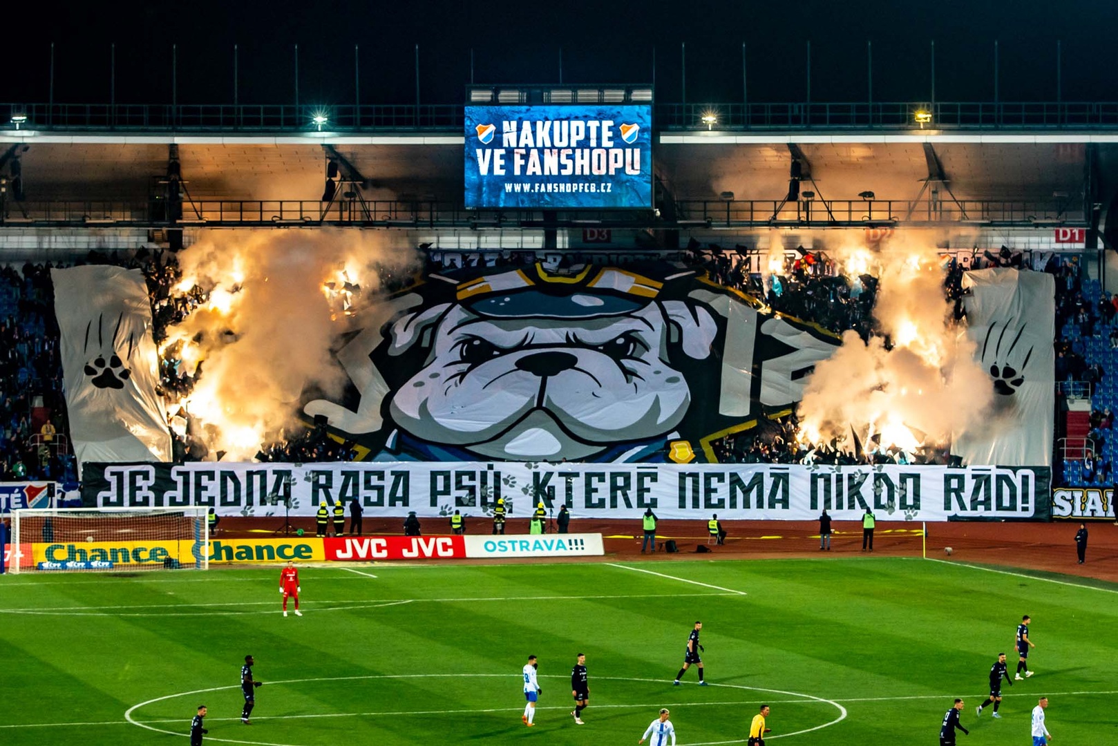 Ostatni mecz jesieni towarzysze z LFA zaplanowali na 14 grudnia o godzinie 19:00. Na stadionie druga najgorsza frekwencja sezonu 6855. Jednym słowem wstyd ale to wina tego że o tej porze musimy jeszcze grać, przez „nadbódówkę” przez którą działacze dbają by żaden termin się nie zmarnował dla bukmacherów. Pomimo słabej frekwencji, na meczu można znaleźć coś pozytywnego, czyli liczbę szali nad głowami podczas hymnu. Ludzie w końcu nauczyli się nosić szaliki podczas meczów piłkarskich. Poza tym razem z nami tego dnia 45 GieKSiarzy – dzięki! Już na początku meczu swoją szansę do wykazania się dostają ostrawscy piromaniacy, którzy rozświetlili choreografię otwierająca spotkanie racami i stroboskopami. Sektorówka z numerem 13.12 który okalał psa z policyjną czapką. Dodatkowo po bokach choreografii znajdują się pasy z psią łapą, a poniżej sektora pojawia się baner „JEST JEDNA RASA PSÓW, KTÓREGO NIKT NIE LUBI!” („JE JEDNA RASA PSŮ, KTERÉ NEMÁ NIKDO RÁD!“). Dzień wcześniej św. Łucja obchodzi święto i jak mówi słynna staruszka, pieprzyć policję na w dniu św. Łucji!