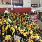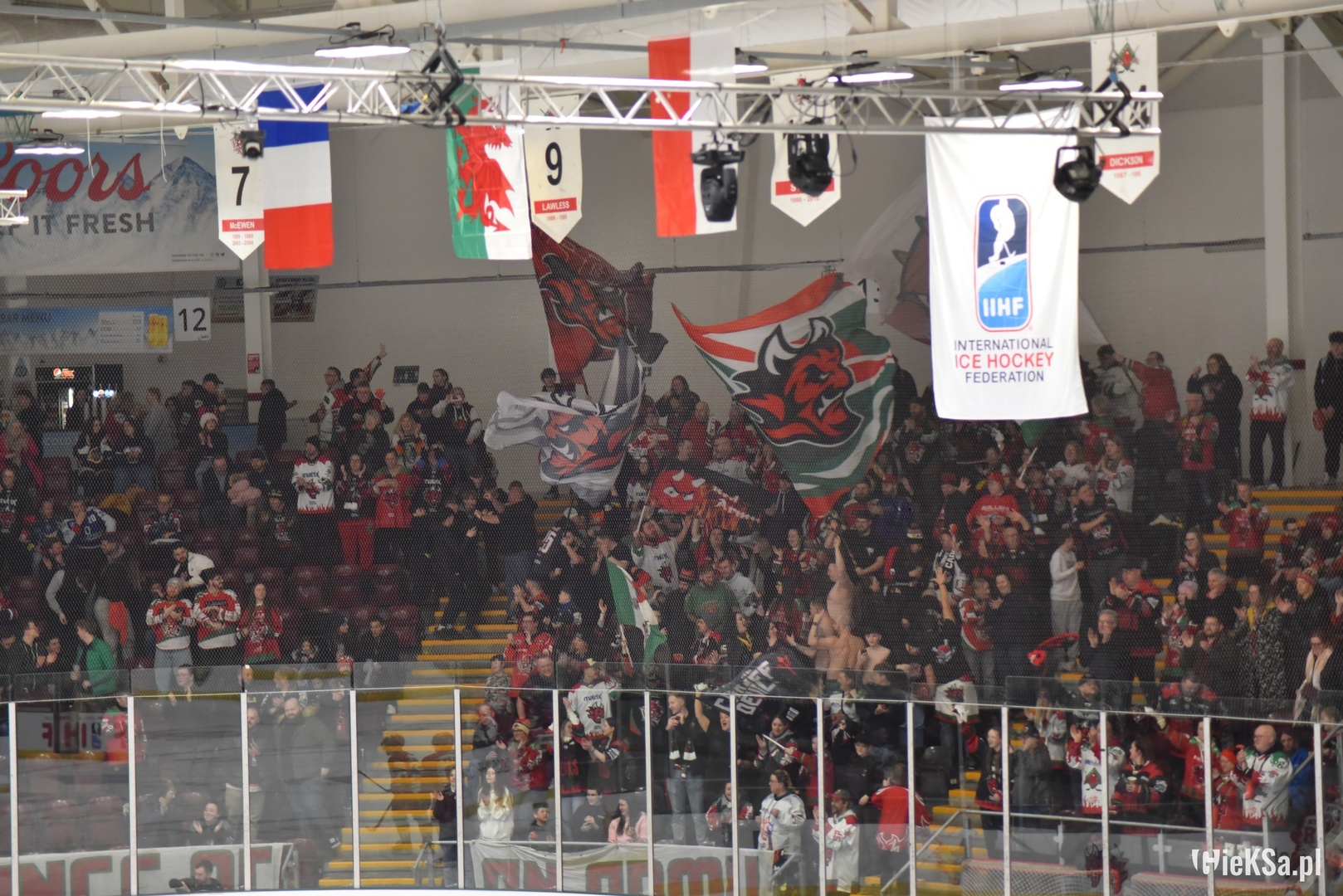 Fani GieKSy pojawili się w ponad 200 głów z kadrową flagą, podobnie jak w ubiegłym roku. Dodatkowo wisiało płótno, również w biało-czerwonych barwach z nazwą dzielnicy „Giszowiec”. Wszyscy ubrani na żółto, dopingowali ile sił, podnosząc poprzeczkę dla miejscowych fanów, których młyn był na ten samej trybunie co nasza. Gdy GieKSie w drugiej tercji udało się wyjść na prowadzenie, euforia w naszych szeregach i choć ten stan trwał zaledwie 3 minuty, to doping nie słabł, nawet przy kolejnych trafieniach walijskich Diabłów. Wynik jednak pomagał miejscowym fanom, którzy mimo iż zebrali nieco mniej liczną grupę dopingową (ok. 140 głów), to wsparcie prowadzili bez przerwy, wymachując kilkoma flagami na wędkach. Posiadali przy tym również aż 4 bębny, przez co często bardziej było słychać uderzenia w membranę jak ich wokal.