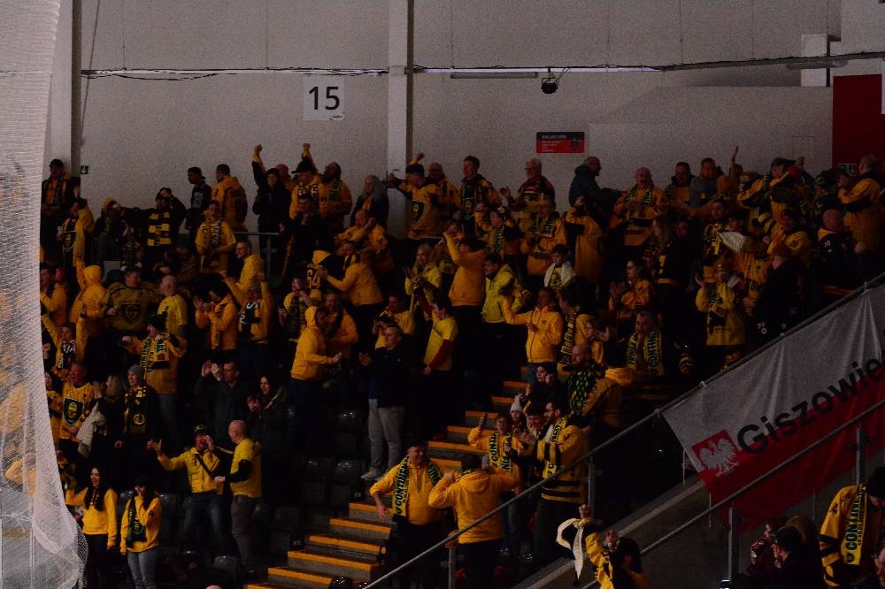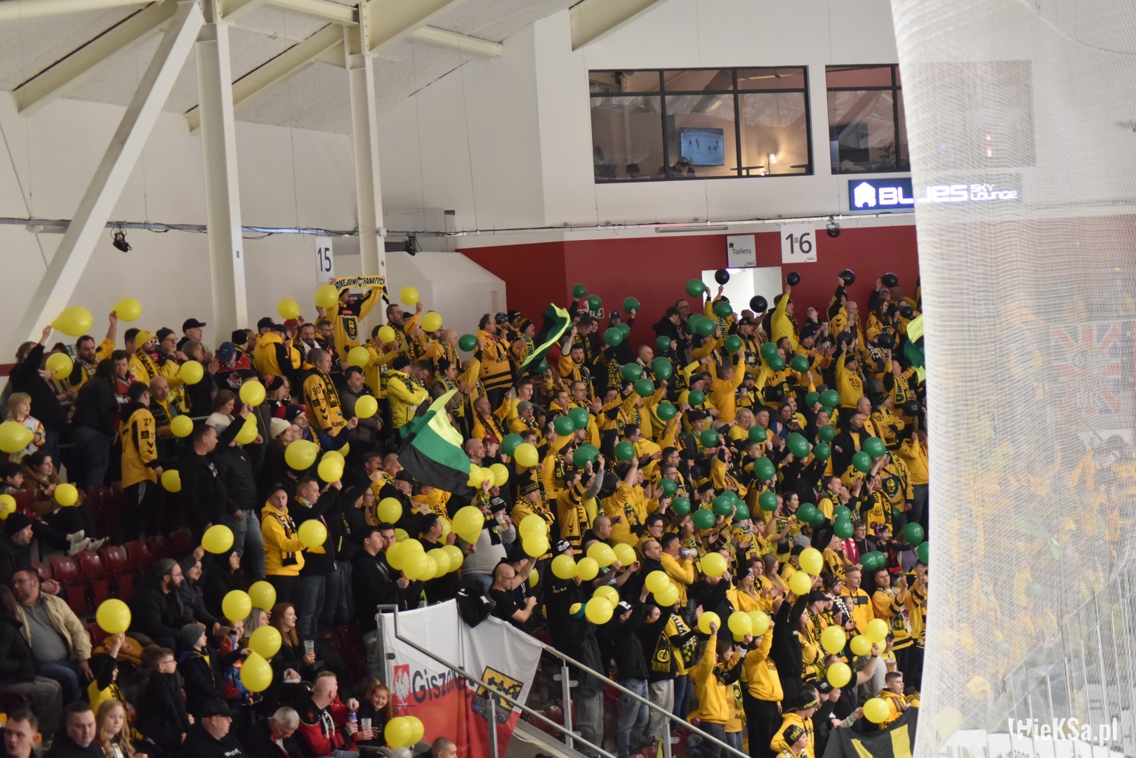 W sumie tego dnia z trybun GieKSę wspierało ok. 400 kibiców, w tym Banik Ostrava (4), Górnik Zabrze (25) i ROW Rybnik (2) – dzięki za wsparcie! Wywieszamy w naszym sektorze flagę „VIP”, „Torcida UK” i „Polska” (kadrówka). Wisi także płótno w barwach narodowych „Giszowiec”. Spotkanie zostało poprzedzone minutą ciszy, gdyż zaledwie dwa dni wcześniej odszedł szwajcarski zawodnik i działacz hokejowy Dr. Hans Dobida.