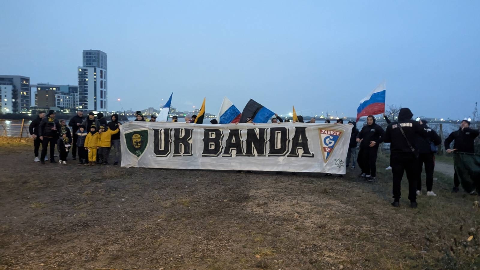 Po meczu otwarcia z gospodarzami czekał nas dzień przerwy, który większość wykorzystała na zwiedzanie stolicy Walii i jej okolic. Spotkanie z francuzami odbywało się w sobotę i jak się przekonaliśmy ten termin przypasował znacznie większej grupie kibiców GieKSy. Na ten dzień mocno mobilizowała się nasza brytyjska emigracja, która zaplanowała swoją zbiórkę przed meczem w okolicach hali. Odpalili przy tym sporo piro, głośno dając znać o sobie przy transparencie „UK BANDA”, lecz to był dopiero początek ich przedstawienia.