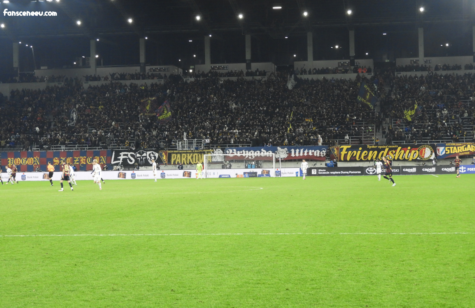 Pierwszy wyjazd KSG wypadł w piątek i to do dalekiego Szczecina, ale jak to mawiają „Nieważne ile masz wyjazdów. Ważne ile masz Szczecinów” więc wiadomo było że za Górnika podąży jego wiara. Torcida zorganizowała na ten wyjazd speca, który startował o 9:30. Droga zajęła nam 8 godzin, lecz ten czas wcale się nie dłużył, bo wszyscy z utęsknieniem patrzyli kiedy liga ruszy po zimowej przerwie. Do meczu mieliśmy więc sporo zapasu, dzięki czemu wszyscy zasiedliśmy na sektorze gości przed startem spotkania. Tego wieczoru na stadionie im. Floriana Krygiera zasiadło ponad 13 tysięcy widzów, w tym 870 przyjezdnych. Torcidę tego dnia wspierała Wisłoka (23), ROW (4), GieKSa (19) i Hajduk Split (87). Tak liczne pojawienie się Chorwatów zostało uwiecznione nową zgodową flagą „UNITED TORCIDA”, która zadebiutowała tego dnia. Poza tym Zabrzanie na wyposażeniu mieli: GÓR\G/NIK, MŁODA TORCA, TORCIDA (czekolada), ŚP. PASTOR, KS WISŁOKA, KSGKS, XXX i TORCIDA SPLIT. Wszyscy ubrani byli na czarno i posiadali klubowe szale, a doping wbrew temu co działo się na boisku, był bardzo głośny. Zresztą zabawa w naszym sektorze trwała przez cały mecz, a dowodem tego niech będzie fakt że mimo mrozu, w pewnym momencie wszyscy śpiewają na gołe klaty.