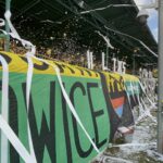 Stary zegar przy Bukowej tyka, czas leci nieubłaganie i choćbym chciał, to nie potrafię tego powstrzymać. Mecz z Piastem to już przedostatnie spotkanie na naszym Estadio przed przeprowadzką, na który przybyły duchy przeszłości. Na stadion co rusz wchodziły osoby jak za dawnych szalonych lat, ubranie we fleki, glany i szale ze starymi wzorami, na których dominowały czaszki, buldogi, kostuchy i krzyże celtyckie. Nie zabrakło również domowych wyrobów na drutach, takich jak kominiarki, szale i czapki, które jeszcze dziergały babcie naszych ojców. Oi! szykował się klimat nie z tego wieku, gdyż na płocie pojawiały się flagi głównie z lat 90., które kibice szyli i malowali własnoręcznie. Dziś już nieco zniszczone przez czas i inne czynniki, lecz te kilka dziurek, poprute i wyblakłe litery, dodawały również im magii w epoce kapitalizmu, gdzie ludzie zapominają już, jaka jest wartość tego co zrobi się samemu…