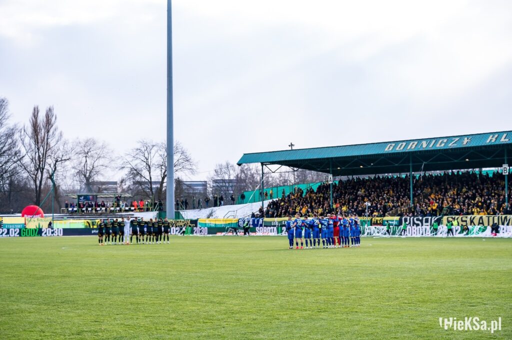 Gdy już uprzątnięto pole gry, oddano hołd minutą ciszy dla byłego trenera bramkarzy Rafała Skórskiego oraz wieloletniego pracownika Klubu Jerzego Przybyły. Potem już ruszyliśmy z dopingiem, gdzie nie brakowało hitów z dawnych lat. „Szły mróweczki…”, „ajjajjajaj do boju trójkolorowi” czy „Do boju marsz…” to tylko kilka przykładów starych dobrych przyśpiewek, które można było usłyszeć podczas tego meczu. Jedyny obraz teraźniejszości pojawił się w 9. minucie w postaci chorągwi poświęconej śp. Jasiowi Furtokowi, która w późniejszym czasie została zastąpiona przez trzy inne duże flagi na kiju z poprzedniego milenium.