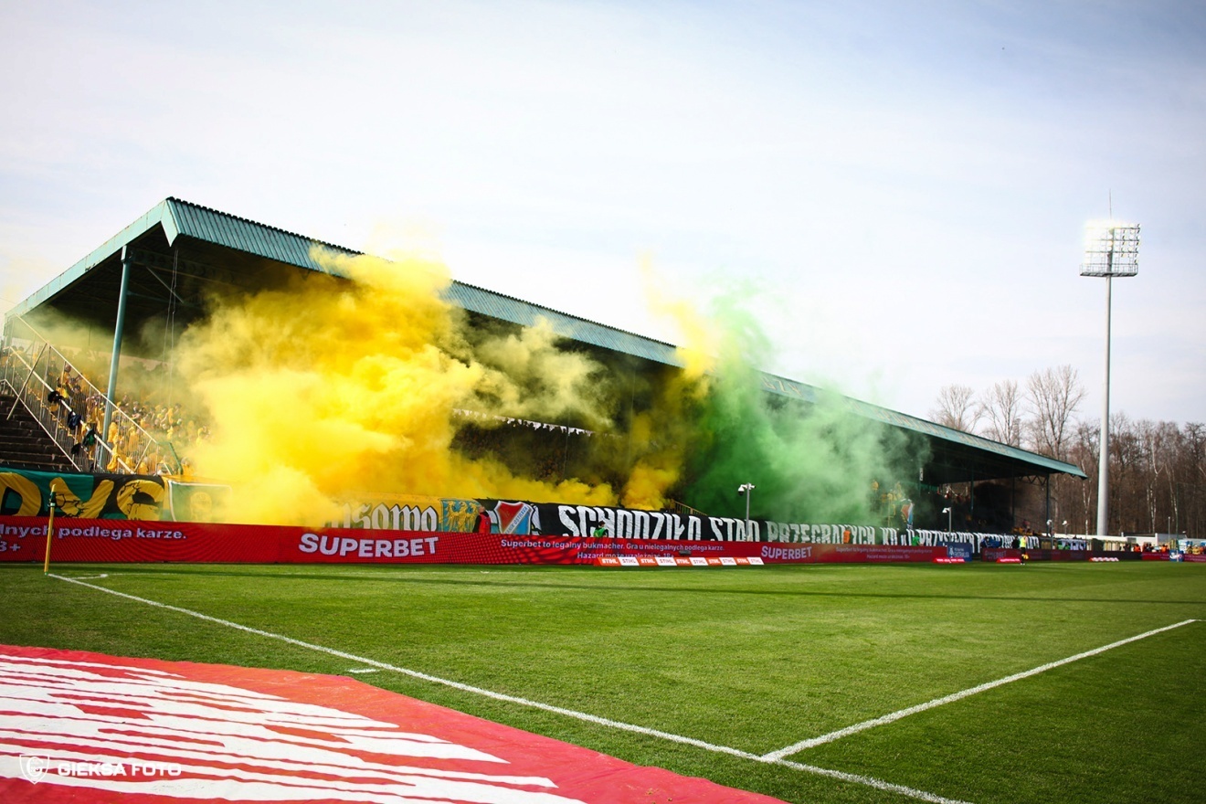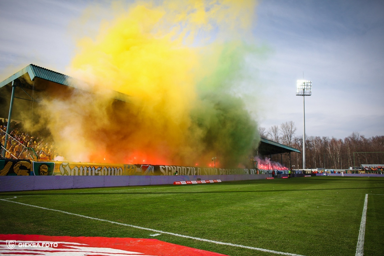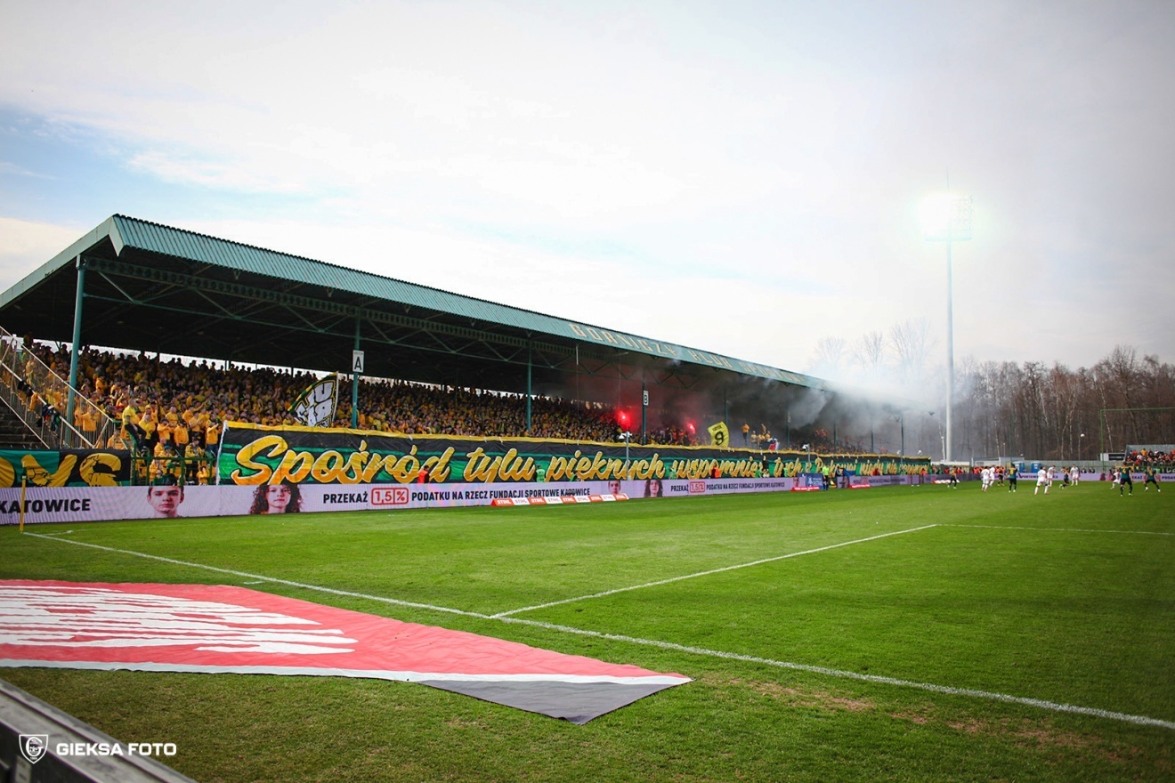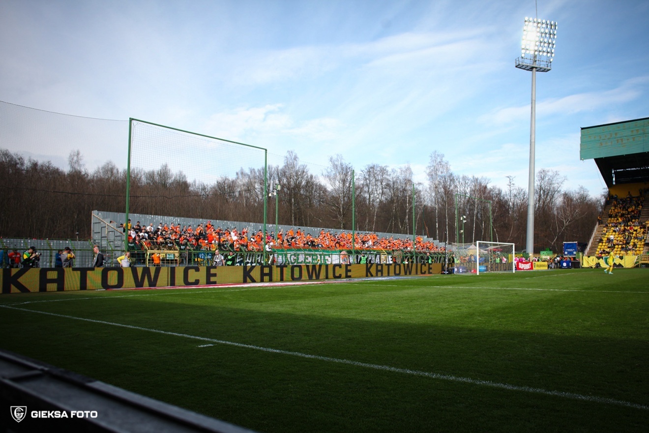 Ostatni mecz przy Bukowej za nami. GKS Katowice pożegnał Stadion Miejski przy ul. Bukowej 1A ligowym meczem z Zagłębiem Lubin w ramach 24. kolejki PKO BP Ekstraklasy. Trener Rafał Górak dokonał dwóch zmian w wyjściowej jedenastce względem poprzedniego spotkania. W wyjściowej jedenastce pojawili się Lukas Klemenz oraz Filip Szymczak. W pierwszych fragmentach spotkania więcej argumentów w ataku mieli goście. W 13. minucie do zagrywanej w pole karne piłki dopadł Ludvig Fritzson, jego uderzenie głową minęło słupek bramki GKS-u Katowice. W 21. minucie Dawida Kudłę próbował zaskoczyć Tomasz Pieńko, ale jego strzał przeleciał obok spojenia. Chwilę później najgroźniejsza w tej połowie akcja GKS-u. Borja Galán złamał do środka i uderzył mocno, ale piłka przeleciała nad poprzeczką bramki strzeżonej przez Dominika Hładuna. Kolejną szansę miał w 37. minucie Bartosz Nowak, który wrzucał piłkę z rzutu rożnego. Ta wpadła w gąszcz zawodników ustawionych przed bramką i Hładun z najwyższym trudem wybił ją z pola karnego. Jeszcze przed zakończeniem pierwszej połowy groźnie z ostrego kąta uderzał Kajetan Szmyt. Młody zawodnik Zagłębia nie trafił jednak w bramkę. Na przerwę zespoły schodziły więc z bezbramkowym remisem. Katowiczanie na drugą połowę wrócili bez zmian. W pierwszych minutach drugiej części mocno nacisnęło Zagłębie, kilka razy stwarzając zagrożenie w naszym polu karnym. Dobrze reagowała nasza defensywa, skutecznie oddalając zagrożenie. W 54. minucie z piłką w polu karnym tańczył Marcin Wasielewski, ale jego podanie nie znalazło adresata. Po chwili wrzucał Adrian Błąd, lecz piłka przeleciała nad głowami jego kolegów. W 60. minucie pierwsza zmiana w drużynie GKS-u. Sebastian Bergier zastąpił Szymczaka. Arkadiusz Jędrych uderzał po wrzutce z rzutu rożnego, ale niestety trafił prosto w bramkarza Miedziowych. W 78. minucie Adrian Błąd zagrał wzdłuż bramki rywala i jako pierwszy do piłki dopadł Bergier dając GieKSie prowadzenie. W ostatnich minutach Zagłębie naciskało, ale GKS dobrze się bronił i w ostatnim meczu przy Bukowej zgarnął TRZY punkty!