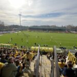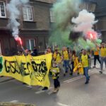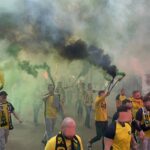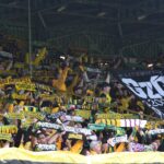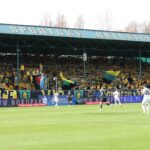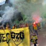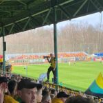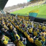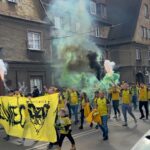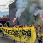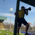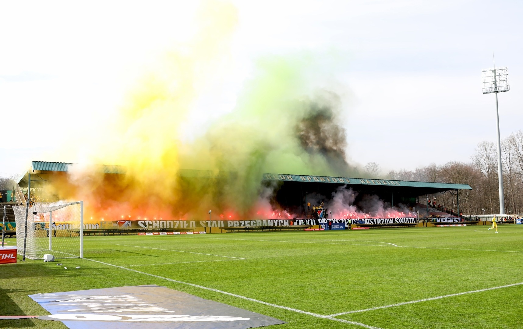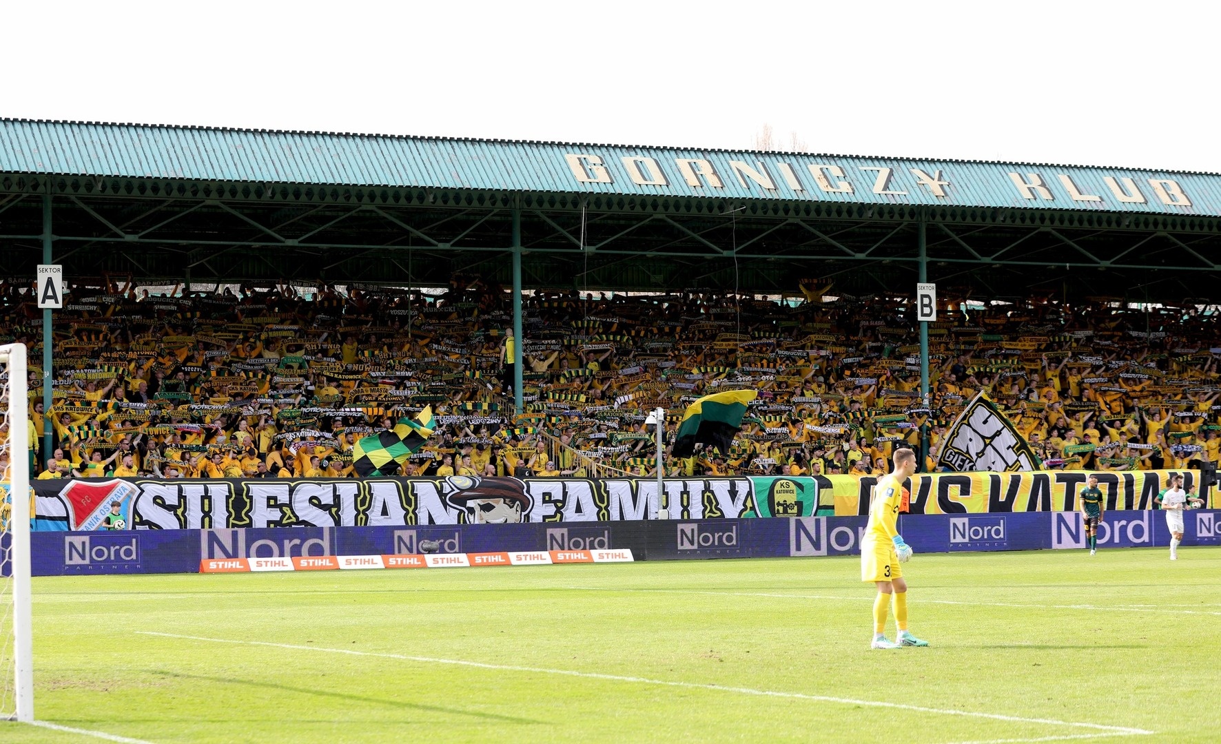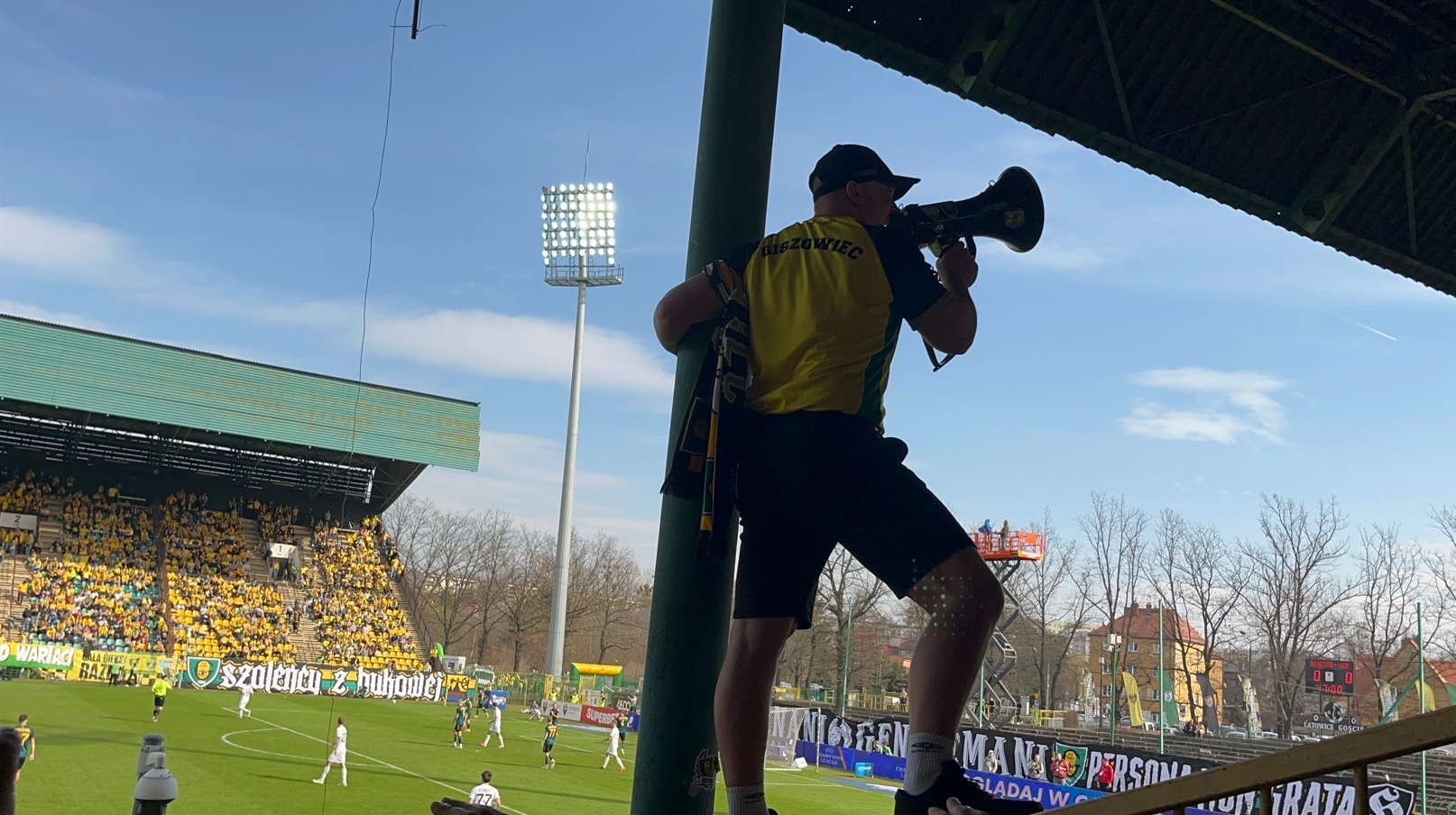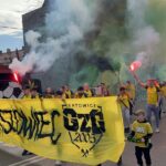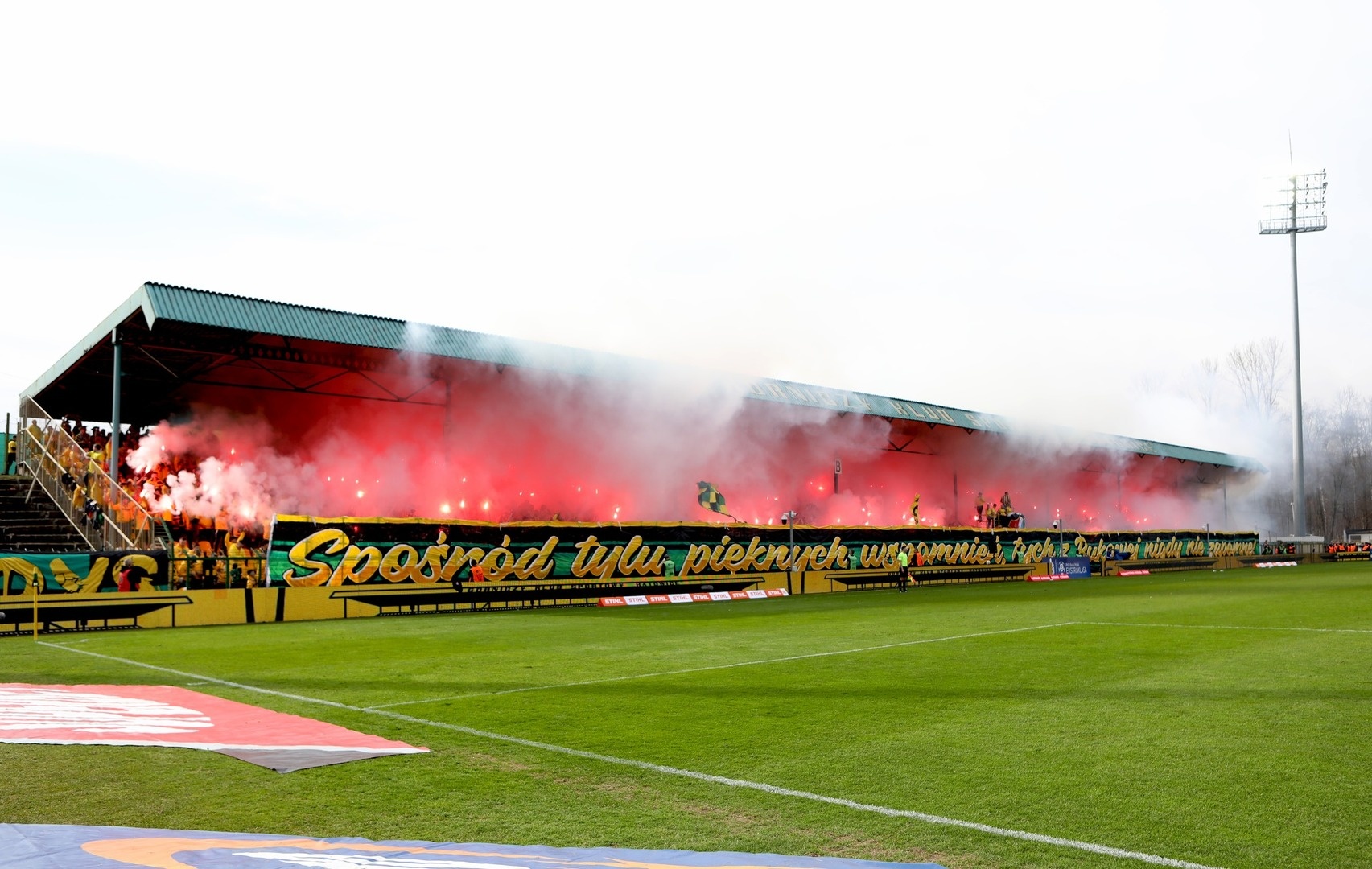 Potem już do końca pierwszej połowy skupiliśmy się tylko na wokalnym wsparciu, uzupełniając prezentacje ubranych na żółto fanatyków, poprzez pojawienie się 6 chorągwi.