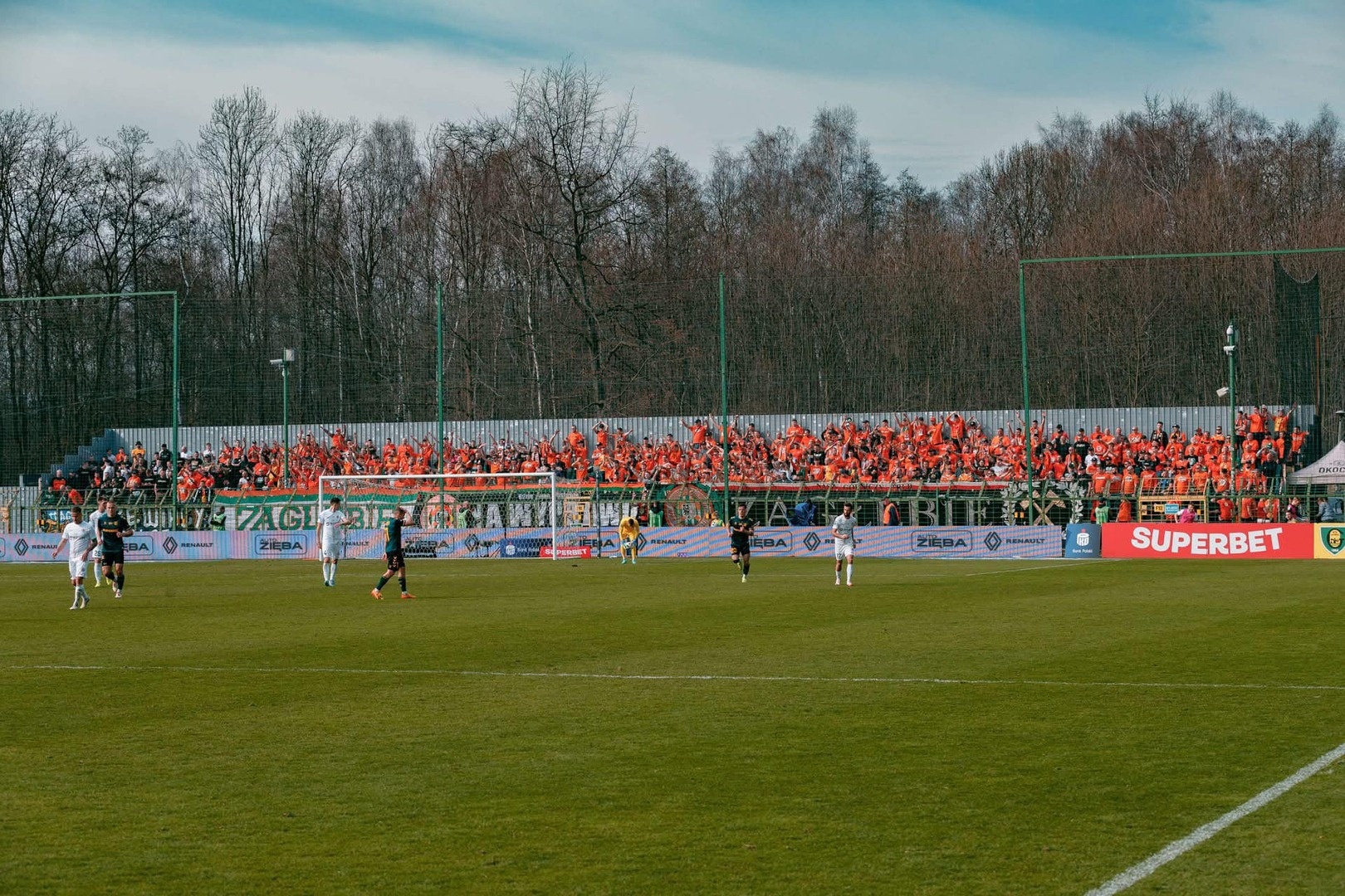 Zagłuszyliśmy całkowicie gości, którzy próbowali się przebić bluzgami, co na Blaszoku nie było nawet słyszalne. Weszli więc w konwersację z kibicami zasiadającymi na trybunie głównej. Fanatycy z Blaszoka tylko raz zwrócili się do napinających się przyjezdnych, zapraszając ich do lasu i przypominając, że ostatnie umówione spotkanie przekładali w nieskończoność, tylko po to, by się nie odbyło.