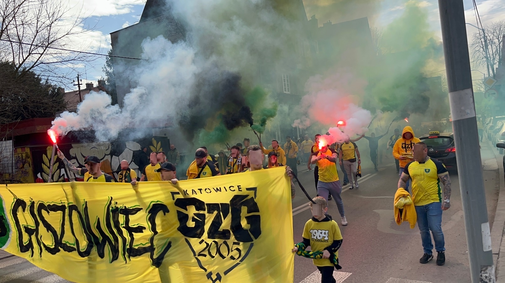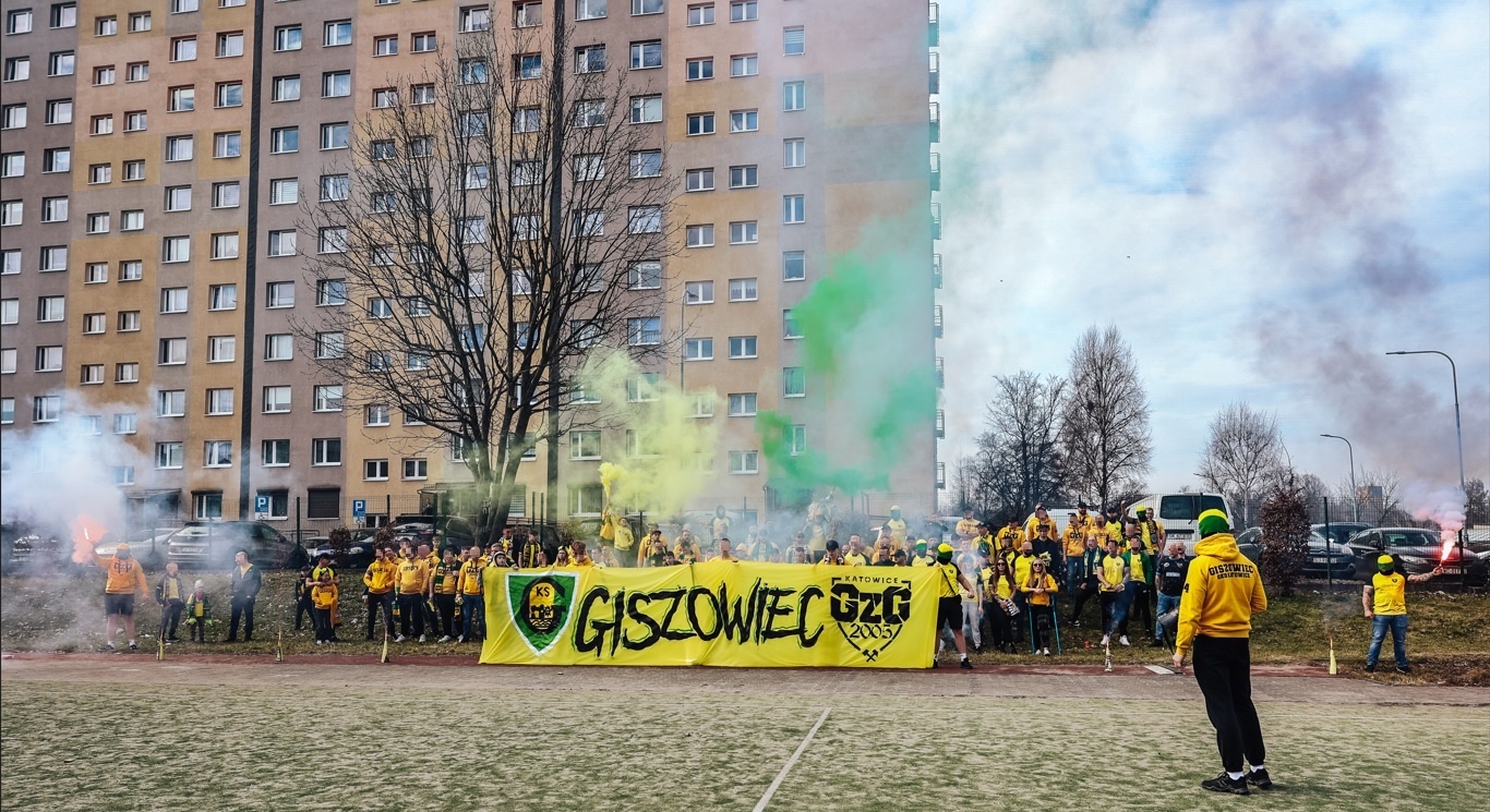 Giszowiec na ten mecz udał się ze wspólnej zbiórki, a następnie przemaszerował razem przez Dąb na stadion, odpalając przy tym sporo pirotechniki. Na przedzie pochodu kibice nieśli transparent z nazwą swojej dzielnicy. Na tym meczu zadebiutowały nowe koszulki „meczówki” wydane z okazji 20-lecia GzG. W sumie wyszło 225 sztuk.