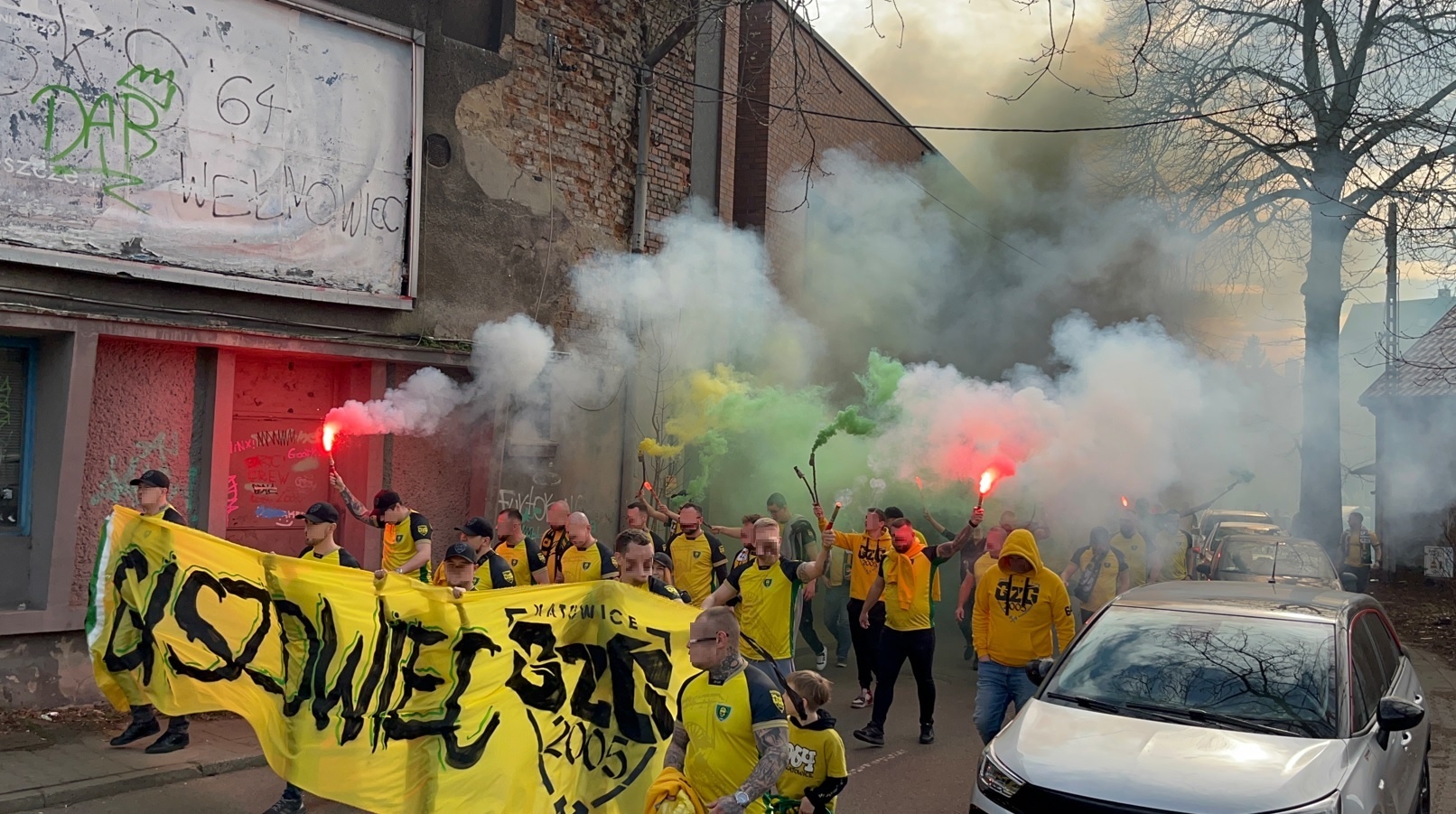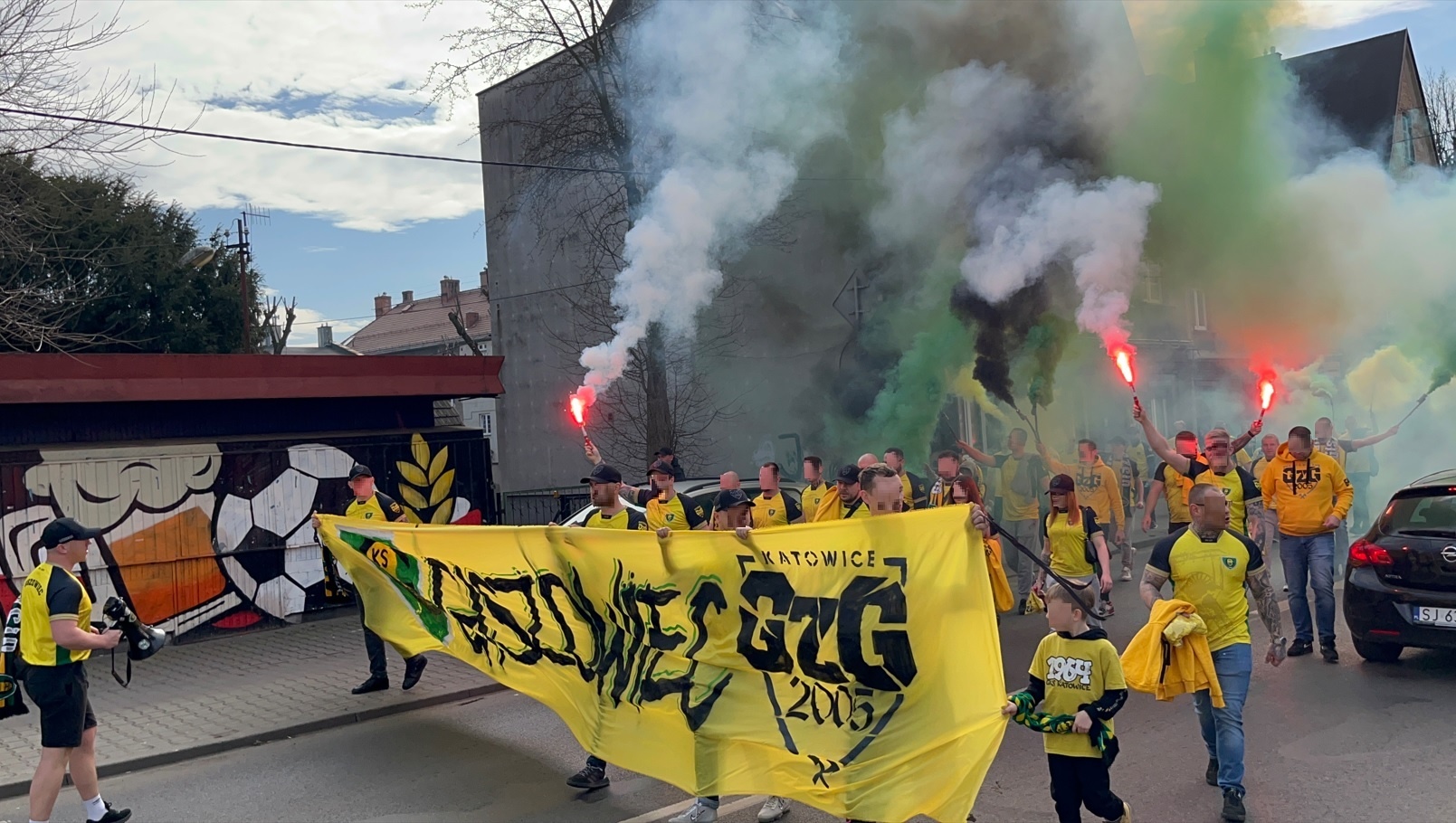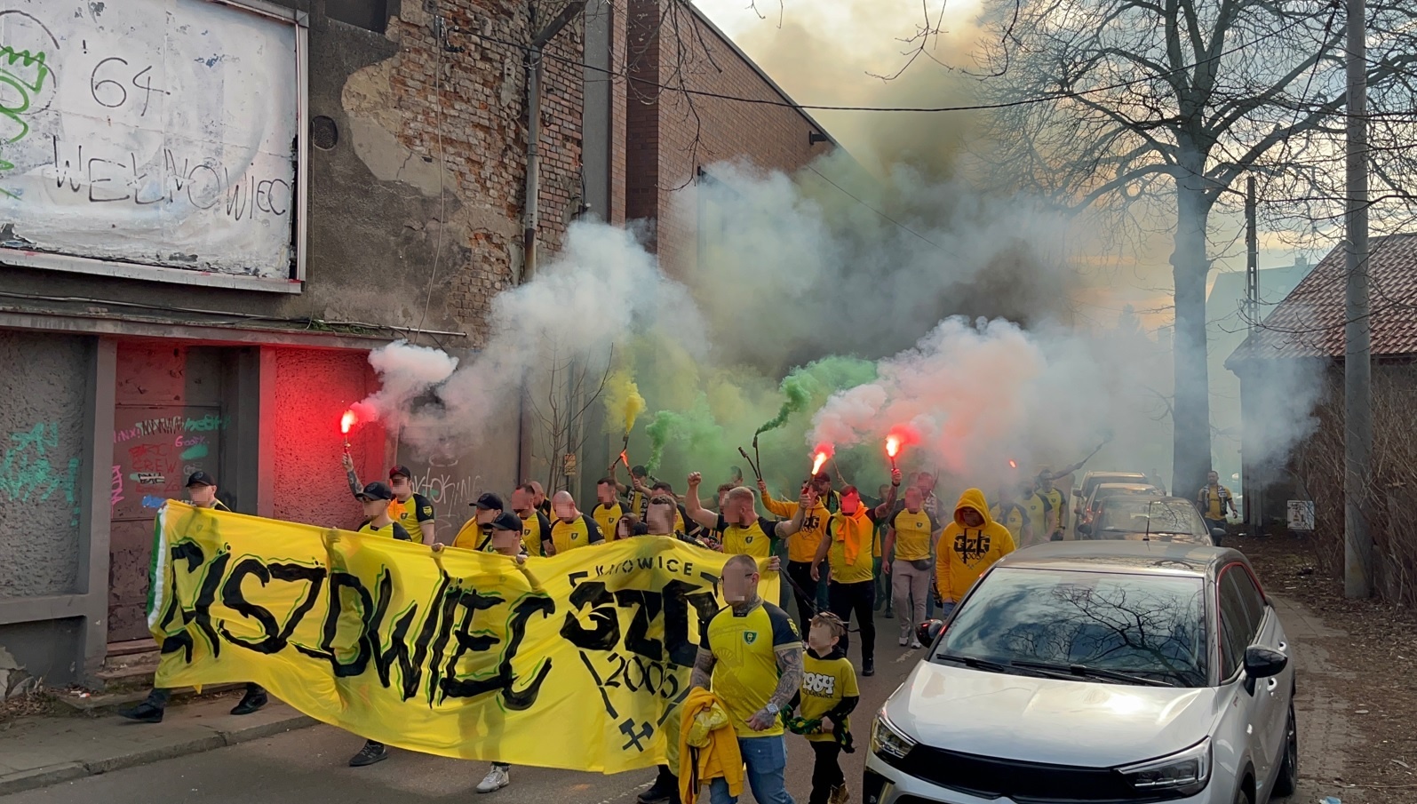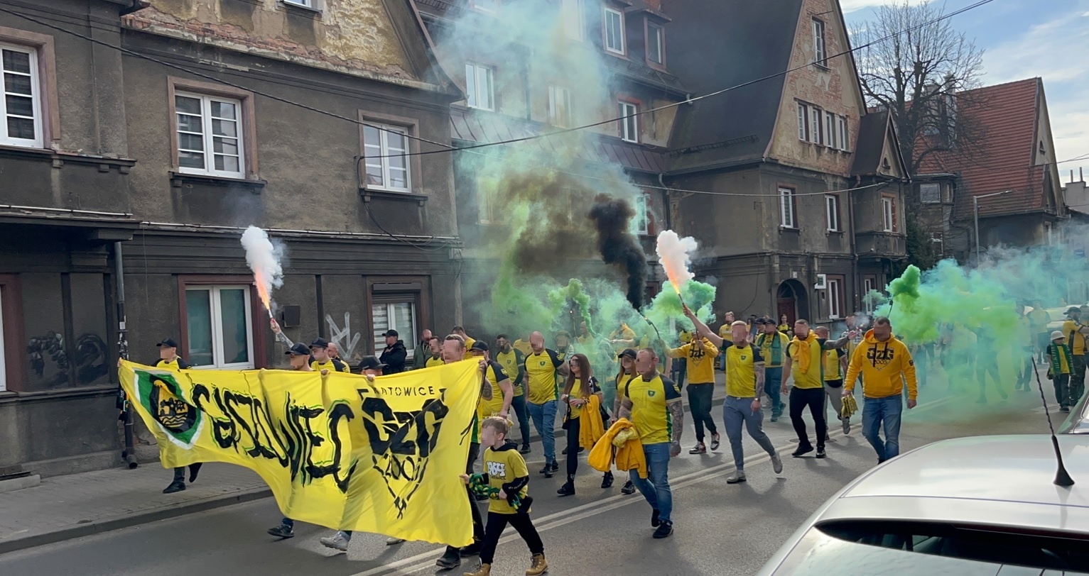 Lubinki przybyli do Katowic transportem kołowym w 409 głów, wykorzystując wszystkie bilety. W większości byli ubrani na pomarańczowo, a na płocie wywiesili trzy flagi i transparent dla Tczewskiej Arki.
